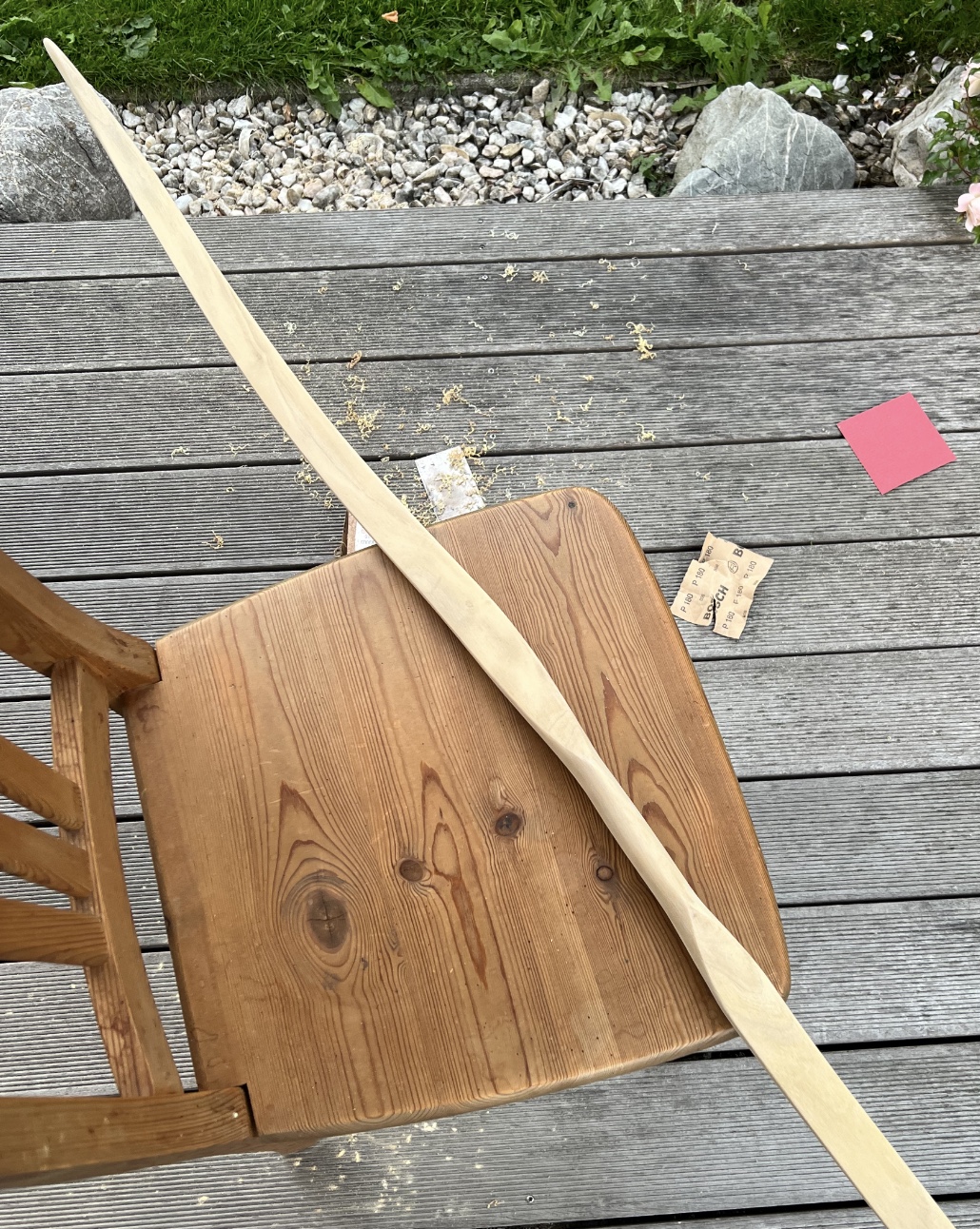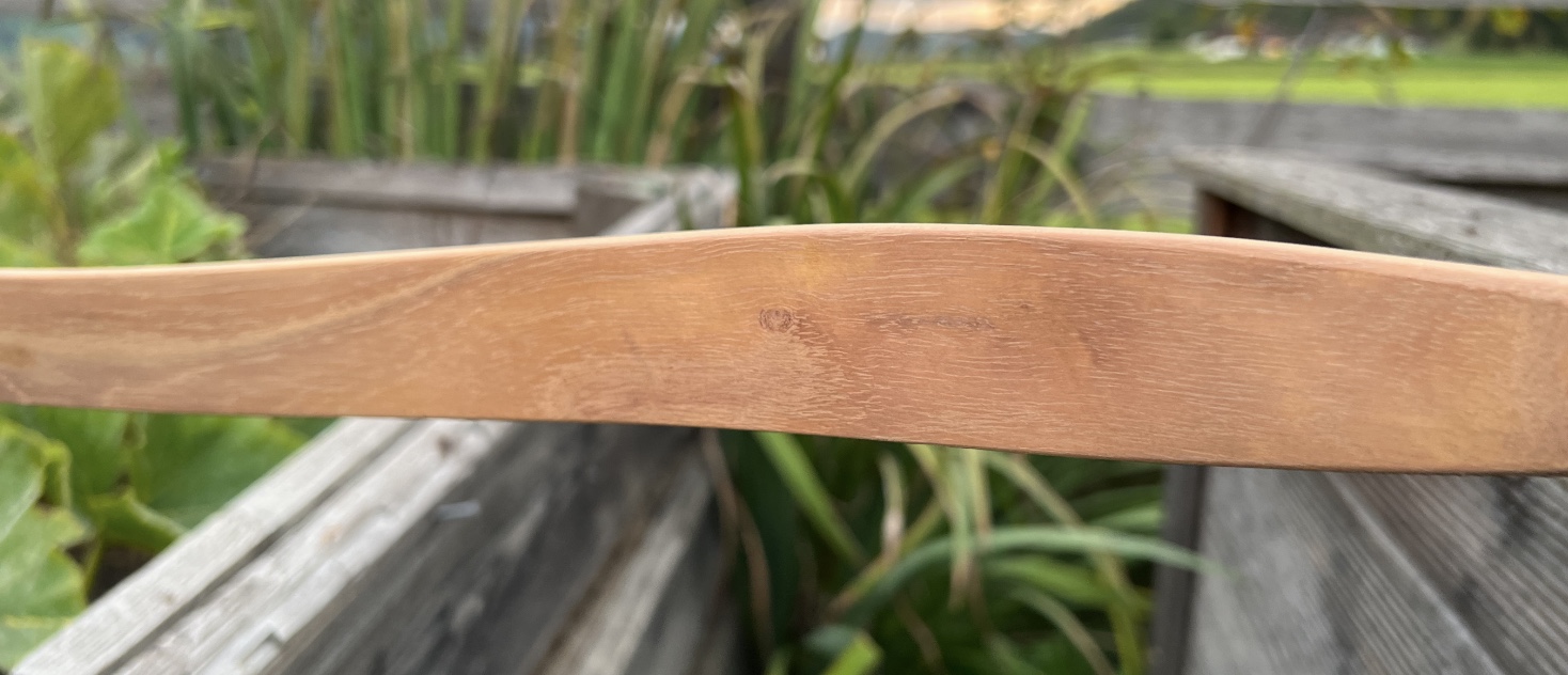 Jetzt lasse ich den Bogen ein paar Tage trocknen bzw. ab lüften, damit das Lignin wieder hart wird. Ammoniak verdunstet angeblich rückstandslos und führt zu keinen dauerhaften Veränderungen des Holzes (sagt die KI), dann Feinschliff sowie Stahlwolle und zuletzt wieder Ölen. LG Stephan