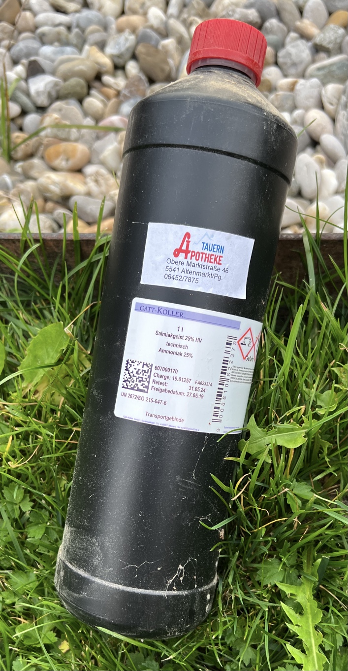 Ich habe eine Schutzbrille und Handschuhe getragen, ich habe großen Abstand gehalten und ich habe im Freien bei leichtem Wind gearbeitet, es hat so überhaupt nicht ätzend gerochen! Nach ca. 5 Minuten war alles wieder trocken und das Holz hat kaum mehr nach Ammoniak gerochen.