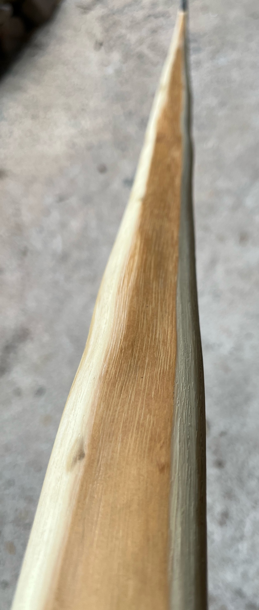 Ich wollte das einmal teilen, auch wenn der noch nicht komplett fertig ist, weil ich ehrlich gesagt selbst total überrascht bin. Ich hatte noch nie ne Robinie, die so geil geschossen hat. Ich hab leider keinen Chrono, aber nach Gefühl ist das zusammen mit meinem 150cm Parcour-Osage der schnellste Bogen, den ich bisher produziert hab (gut, der Osage hat die Hälfte der Breite, aber wir wollen ja auch nicht Äpfel mit Birnen vergleichen