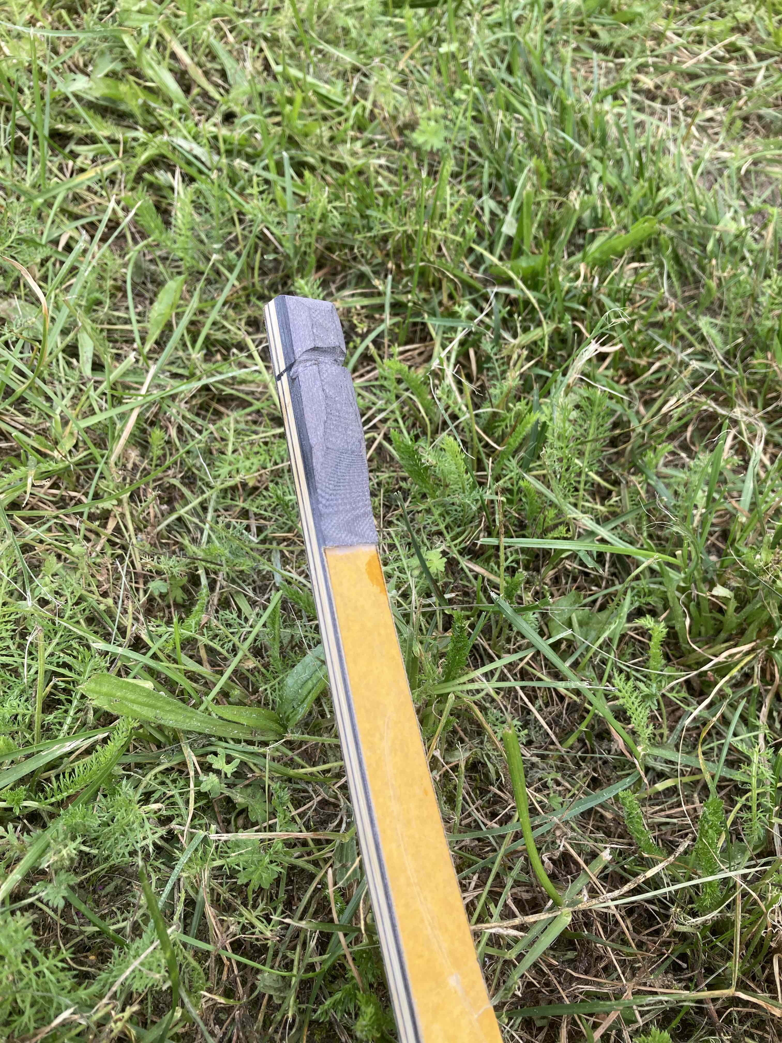 Der Bogen hat aktuell 32# @ 28", wenn ich mit schleifen fertig bin wird er wohl auf auf 30-31 rauskommen und ist damit für mich gut zu schießen. Ein Auszugsbild hab ich...