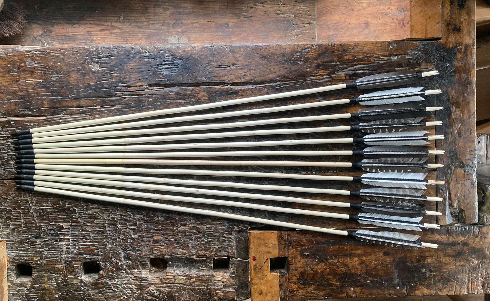 12 neue Schösslingspfeile, Hasel mit Vorschaft aus Hartriegel