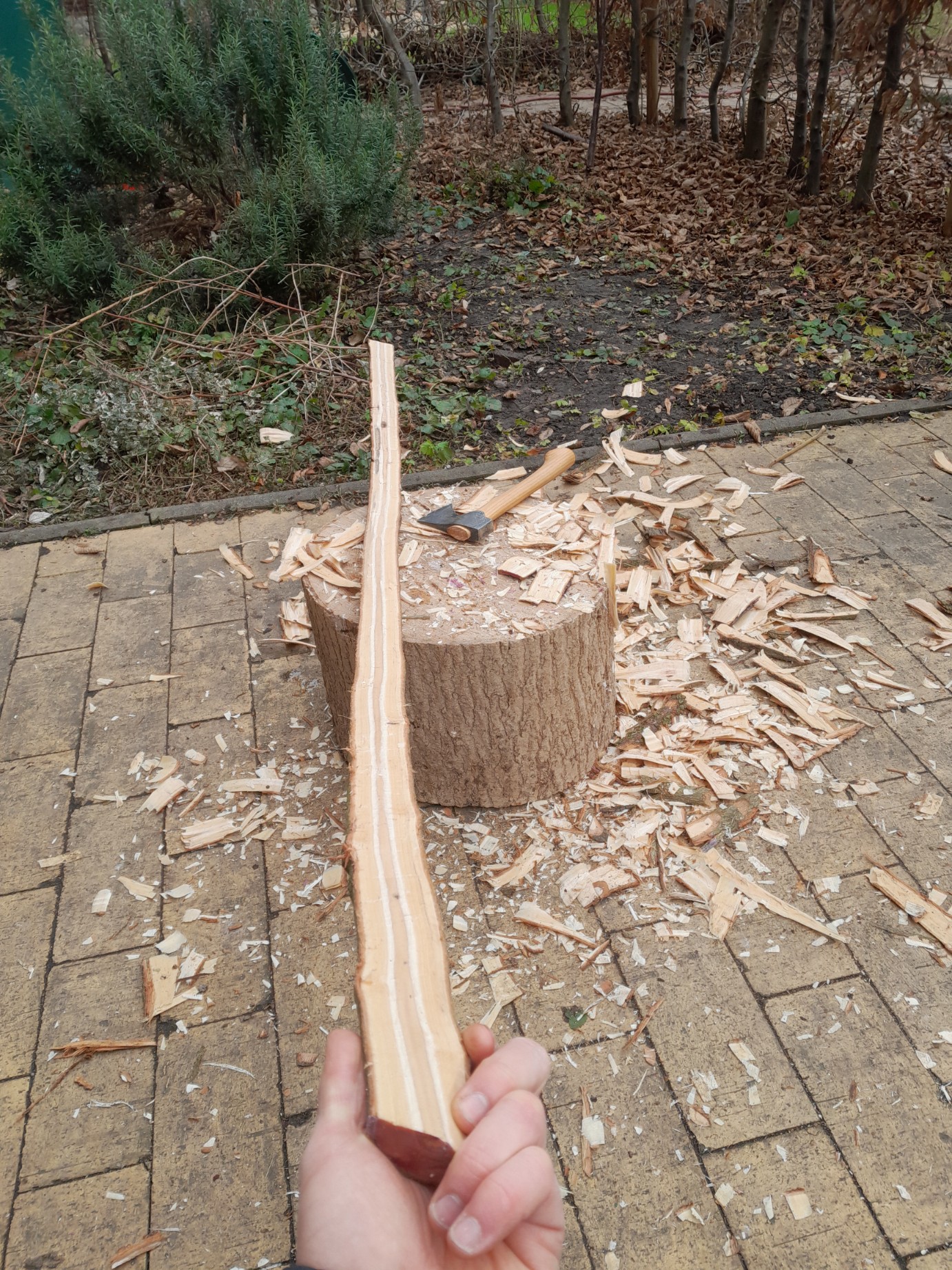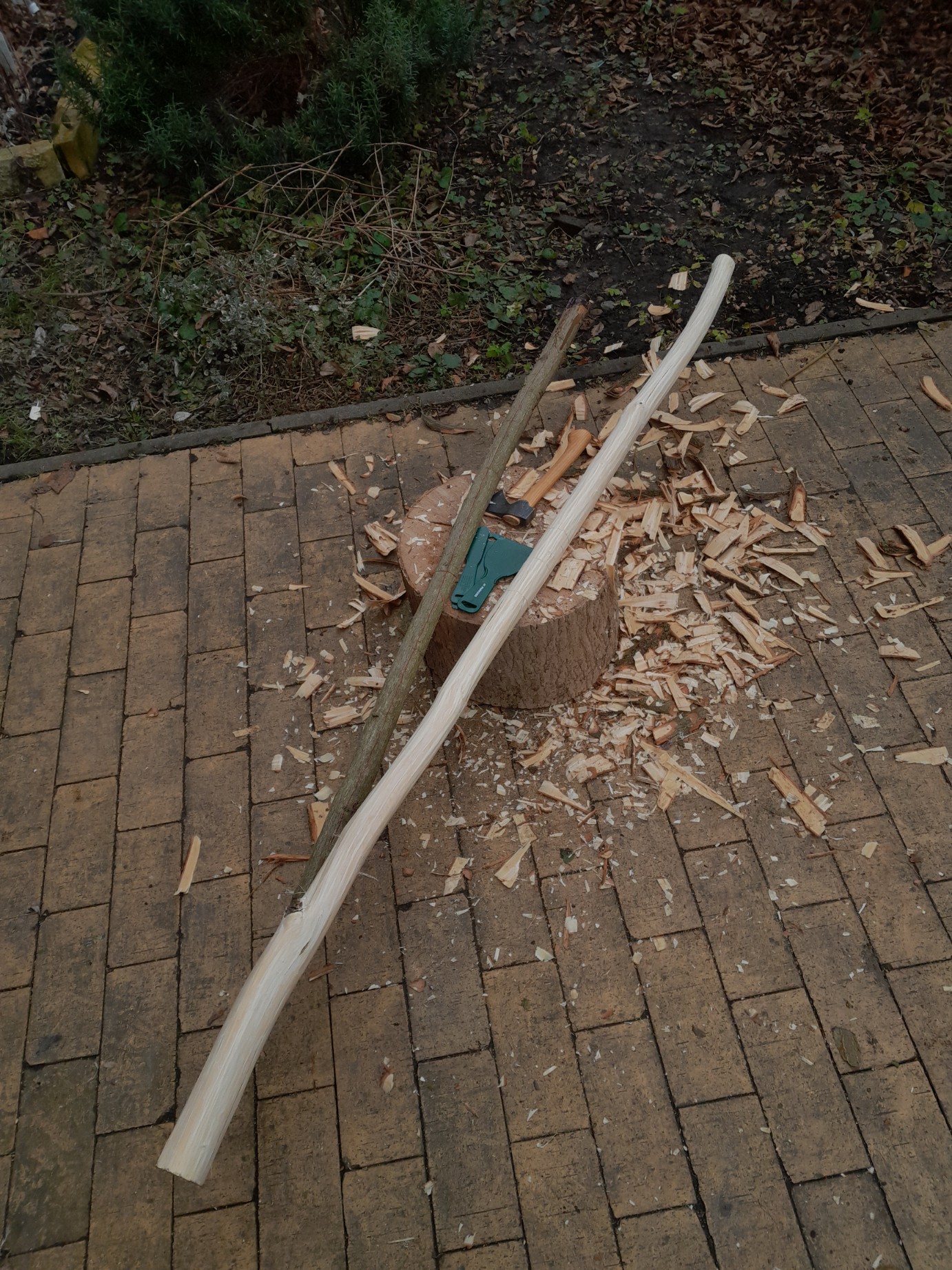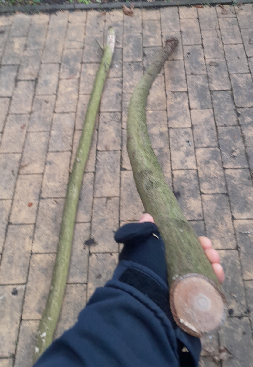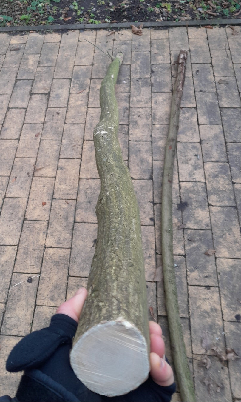 Ich bin heut auch auf Beutezug gewesen und habe zwei Saplinge geschnitten, die ich schon lange auserkoren habe. Zwei Hölzer, die ich noch nie verarbeitet habe.