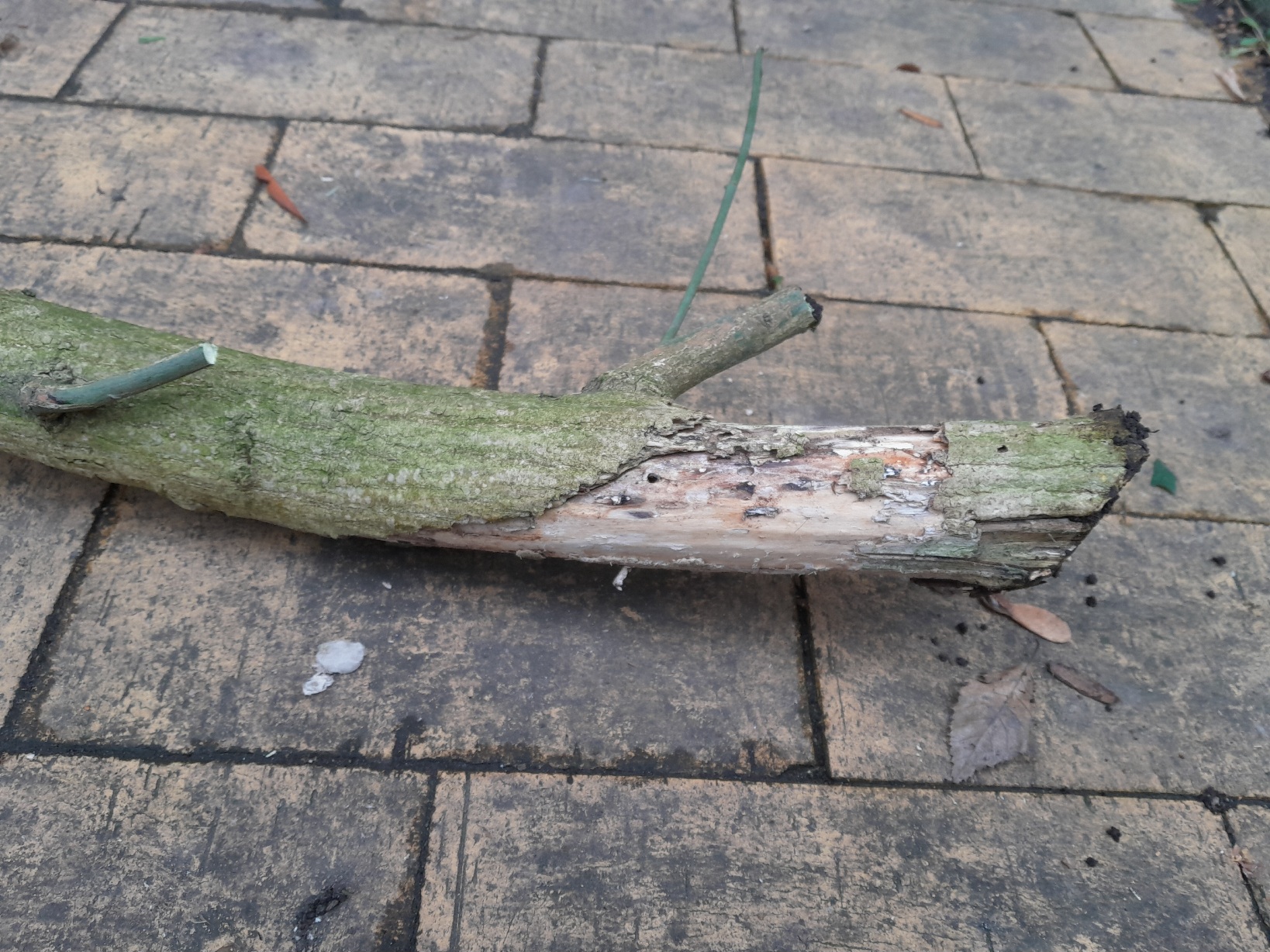 An einem kam sichtbaren Löchlein ist aber scheints Feuchtigkeit und Krankheit eingedrungen und hat eine fiese Gammelstelle erzeugt. Vllt das vorzeitige Ende des Staves? Aber das verfärbte Holz wirkt bis jetzt nicht anders als das gesunde, also vllt hab ich Glück?