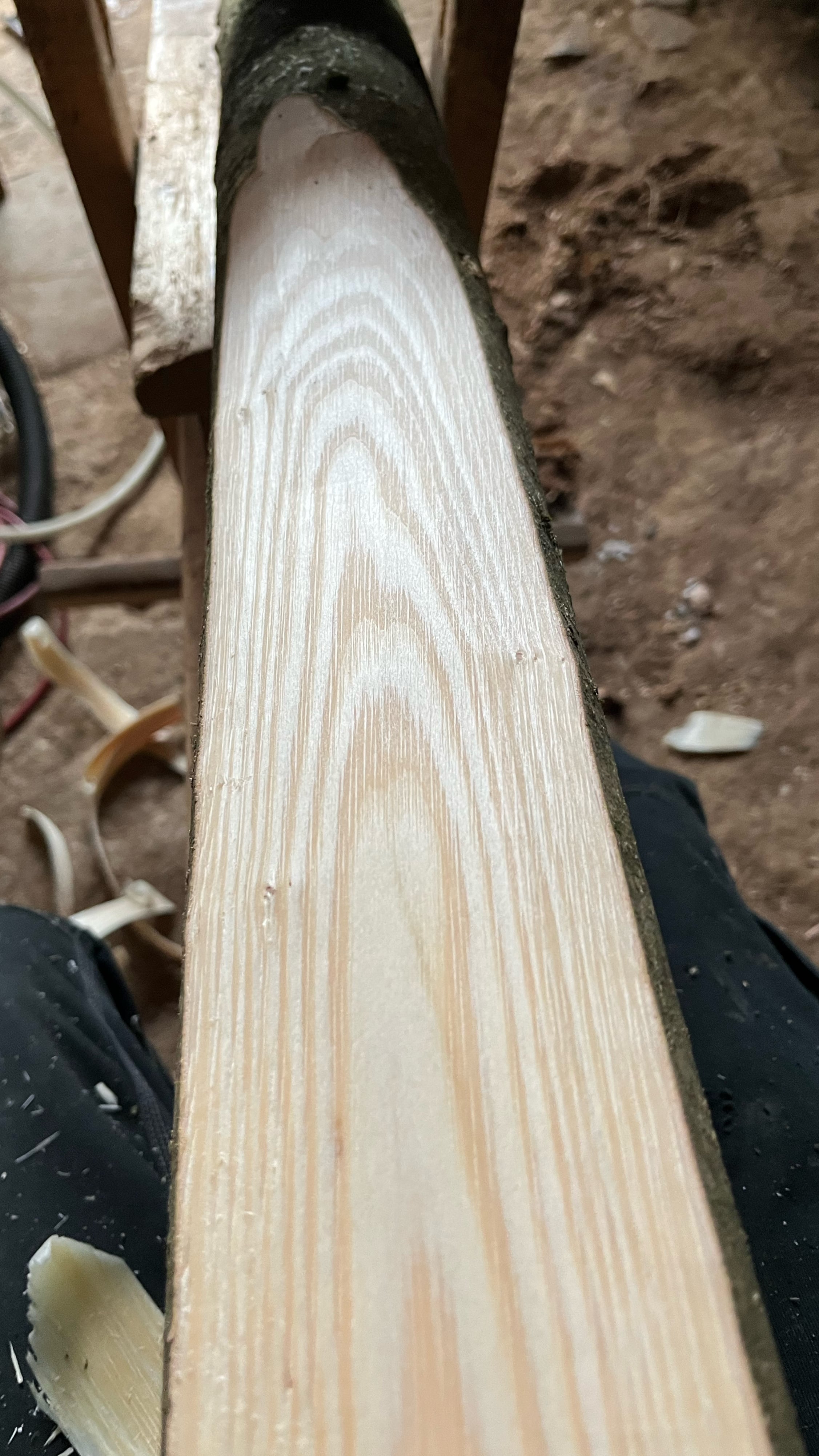Plan ist ein Mölle aus Hasel mit getempertem Bauch und reingeföhnten Reflex im Biegebereich und Holunderfacing an den Needles, um die mitbiegen zu lassen. Bisschen fancy werden muss ja, bei euren ganzen Projekten hier schon wieder komm ich mir ja sonst wie damals mit 8 vor, als ich ne Paketschnur an frische Haselstöckchen gebunden hab