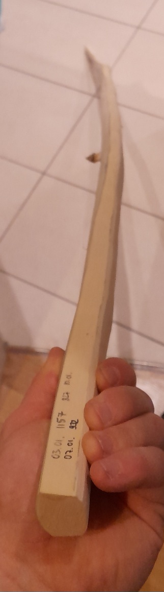 Das gelb was ich am Bauch weggeschnitzt habe, ist nichtmehr gekommen. Habe das Gefühl, dass die Gelbfärbung was mit dem Wassergehalt zu tun hat, zumindest bei meinem stave.