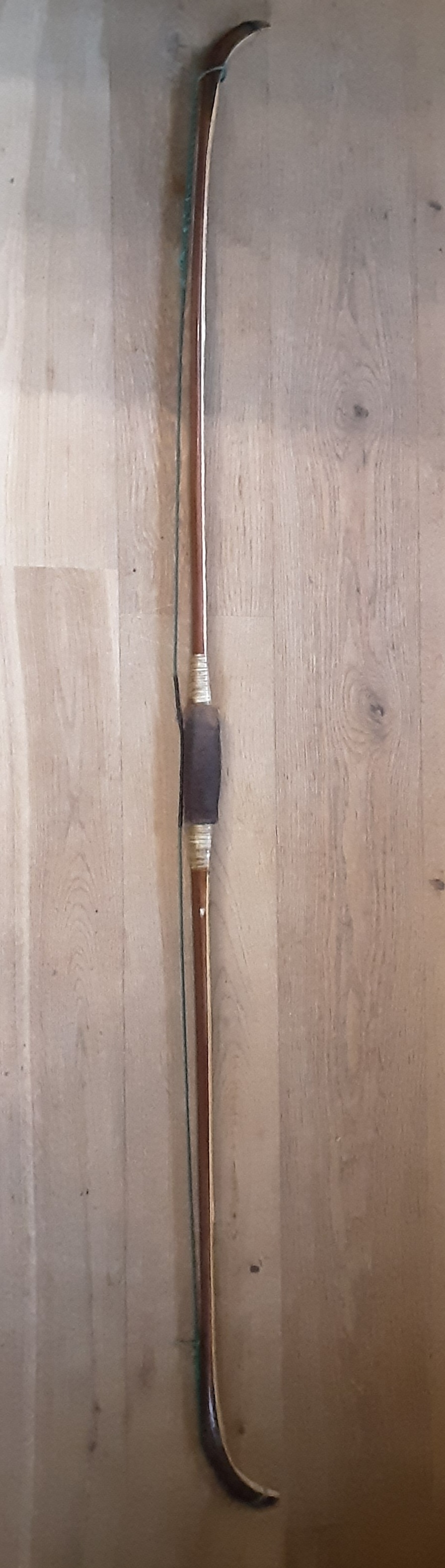 Mal ein Beispiel für einen kurzen laminierten Osage/Bambus static recurve - 55lbs@26", der Bogen biegt hauchzart bis in den Griff hinein.