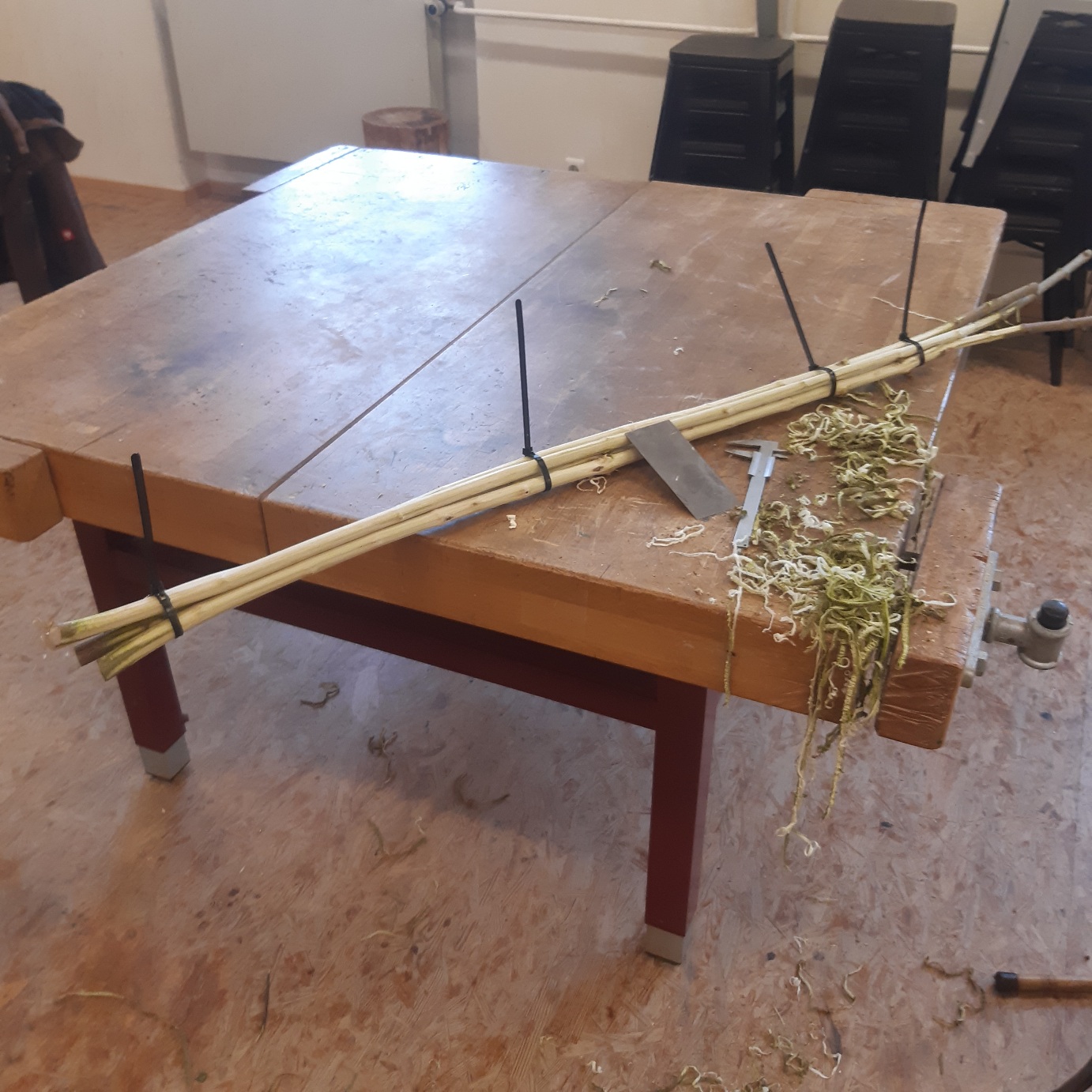 Heute mal die Hartriegel mit der Ziehklinge entrindet ich hoffe die reichen vom Umfang her. Danach mit mehrfach verwendbaren Kabelbindern gebündelt, die nehme ich auch immer zum pfeilholz trocknen. Mal sehen ob ich den kleinen Holler und die Stecken überhaupt verwende?