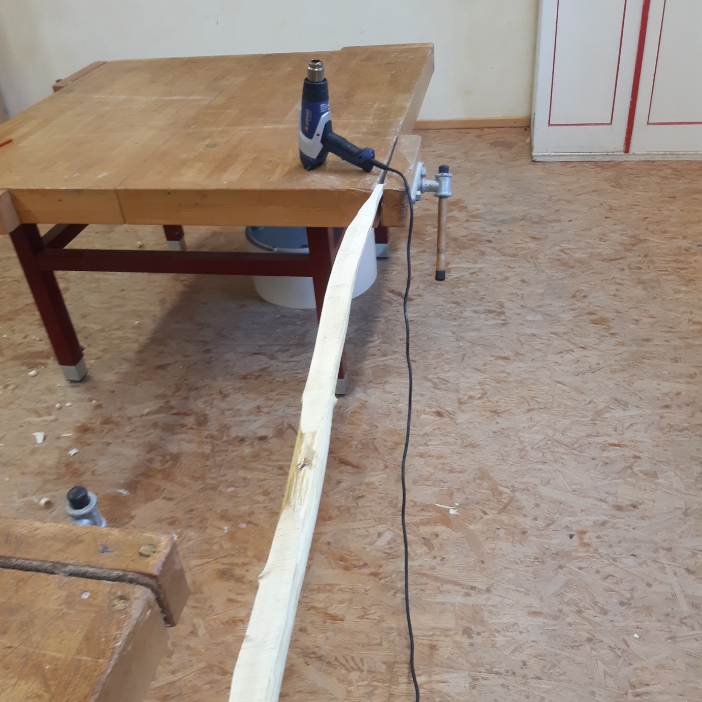 Heute mal am ahorn rumgebogen und am Holler 2 versucht die sehnenlage zu korrigieren. Erst mit Ziehmesser etwas dünner gestalten dann mit Hlp behandelt. Ahorn bleibt erst mal so. Holler2 braucht noch eine Behandlung mit Dampf im Griff.