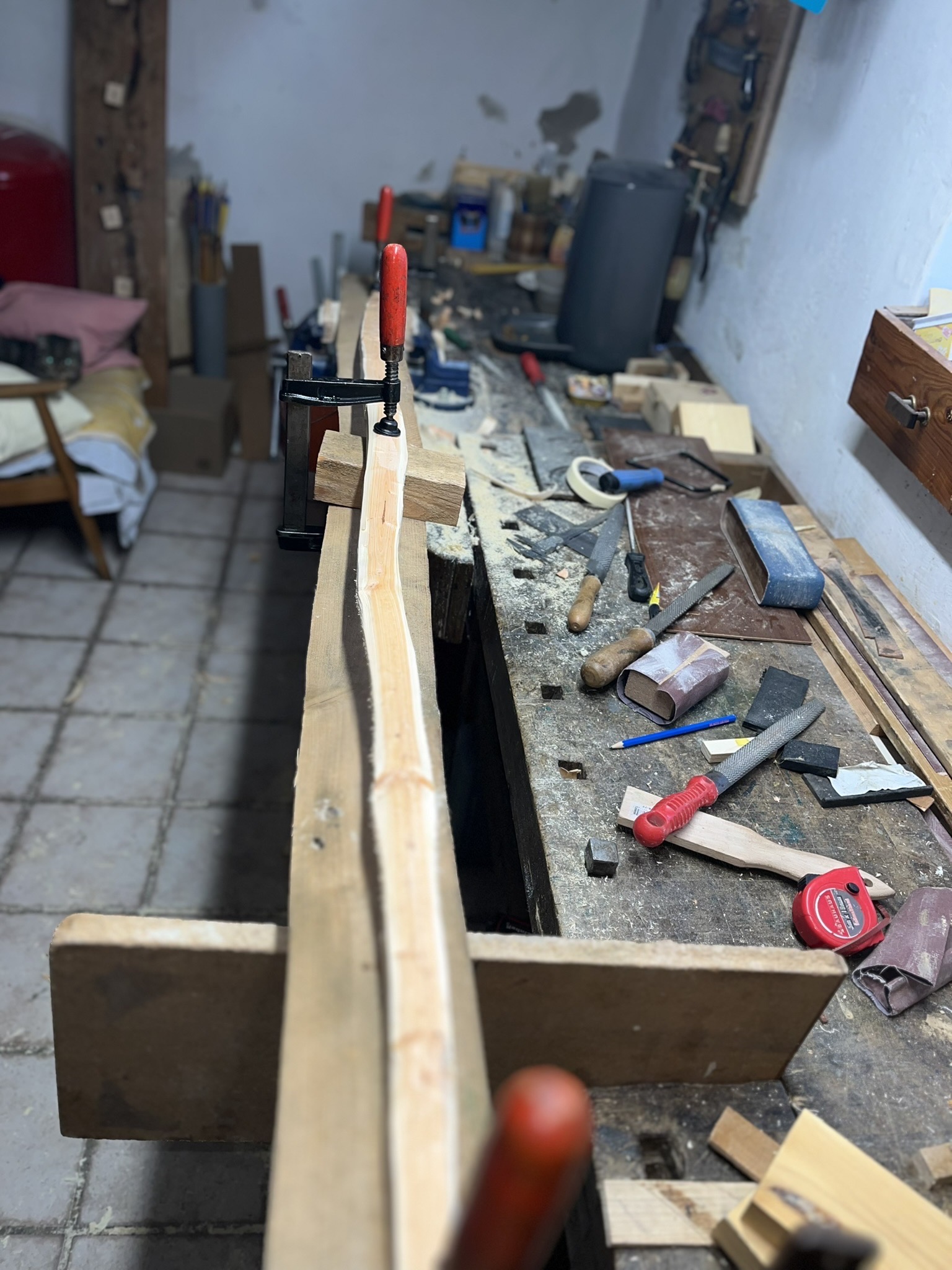 Ein Versuch mit Dampf den Stave zu biegen, wenn das nicht klappt dann Brennholz, das Ding ist zu krumm für das Design.