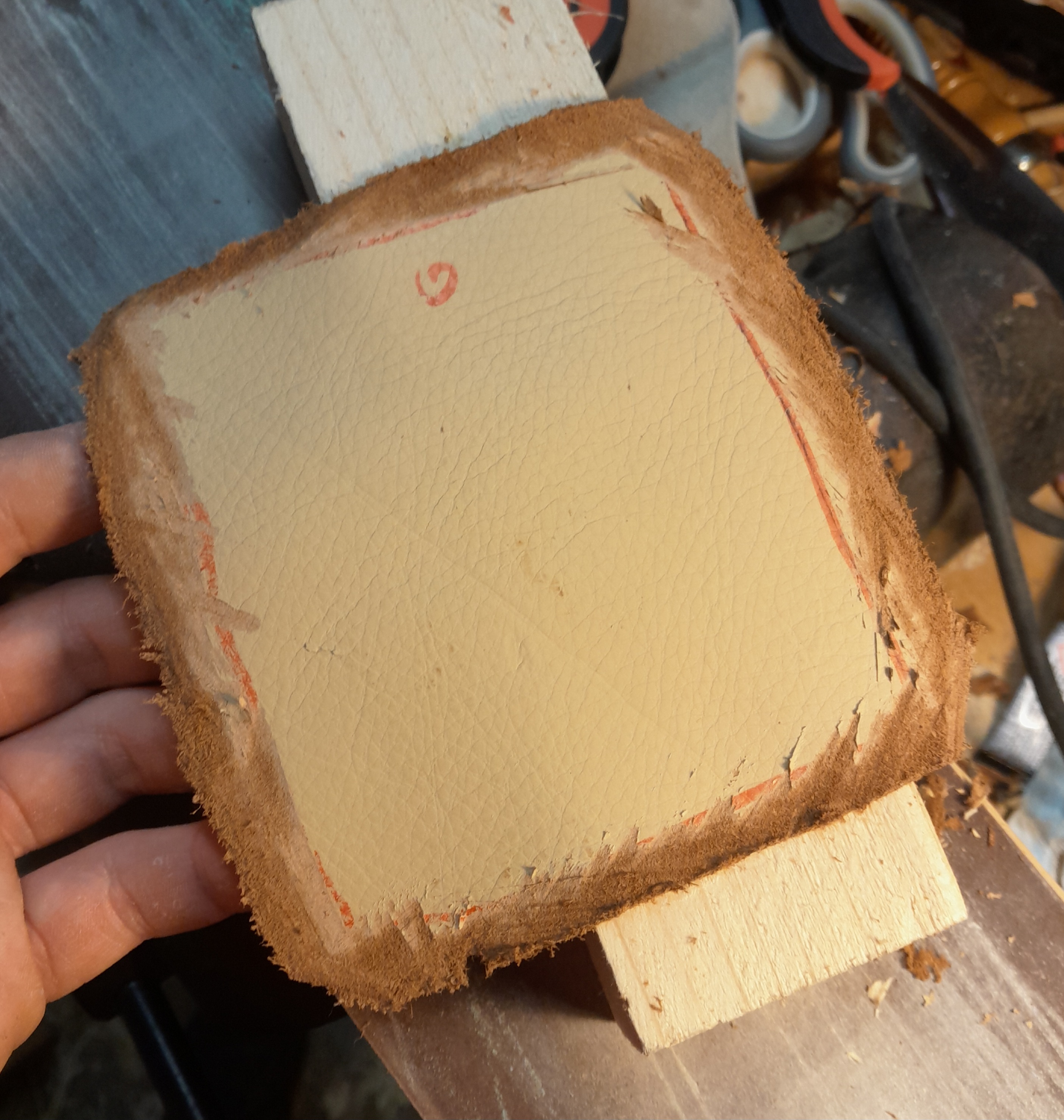 Griffleder vorbereitet (Sofaleder, sehr weich, deshalb schlecht auszudünnen, vor allem huschhusch) Und die Tips der Optik halber etwas mit gehärtetem Leder aufgebaut (getränkt mit Sek.kleber)