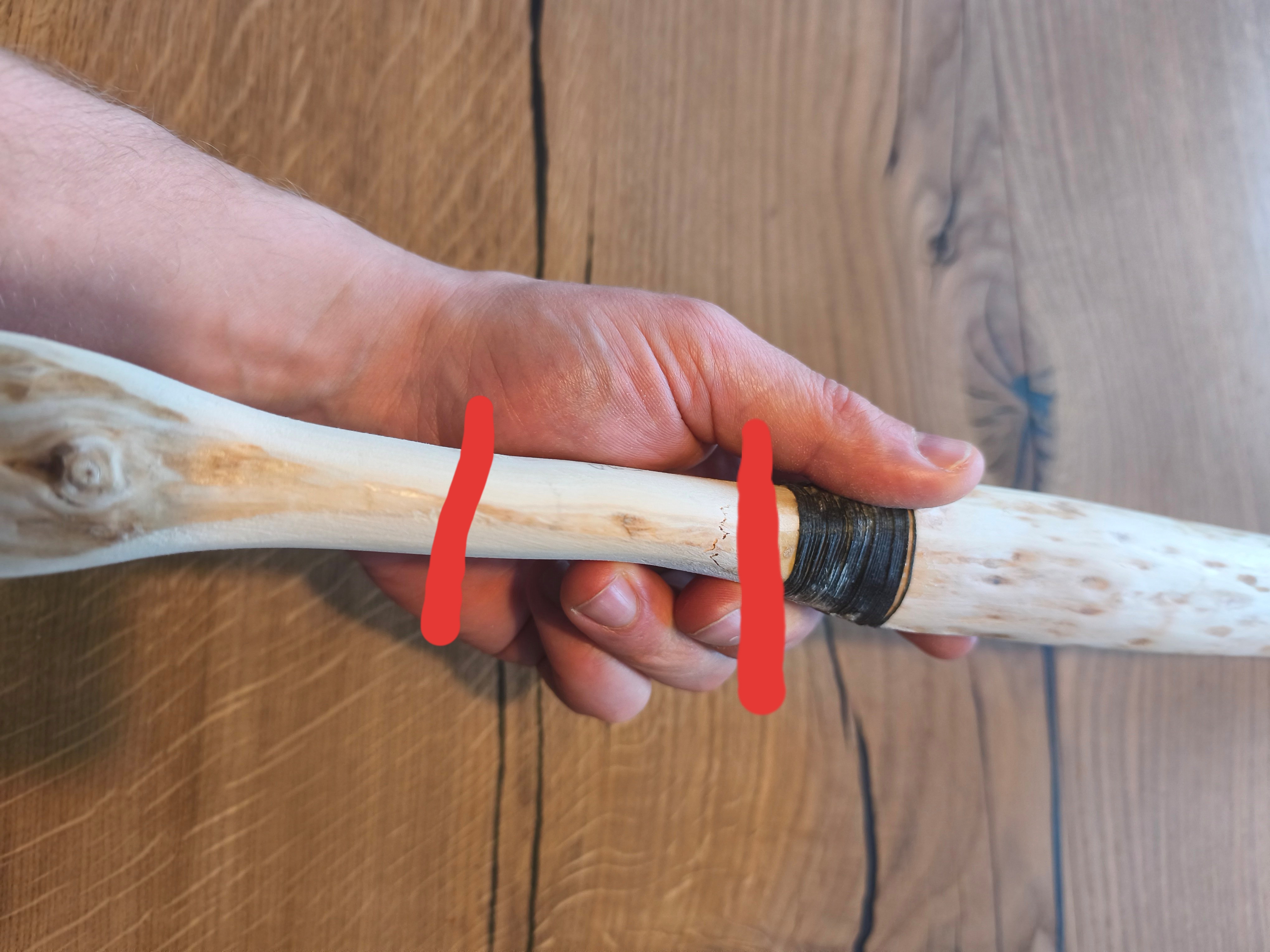 PS: die Wicklung sieht mir auch nicht sehr effektiv aus... Sie darf keine sich kreuzenden Windungen und keine Lücken haben, und muss so fest gezogen sein, dass man beim Entfernen leichte Abdrücke der Schnur im Holz sieht...