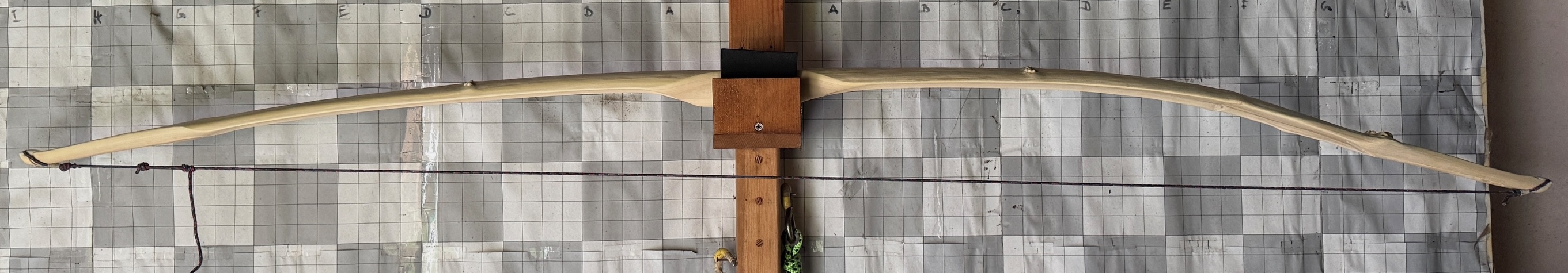 Sehne ist gebaut und ich muss "nur" noch tillern. Ich bin jetzt bei 15cm Standhöhe und 50@22 mit 730g.