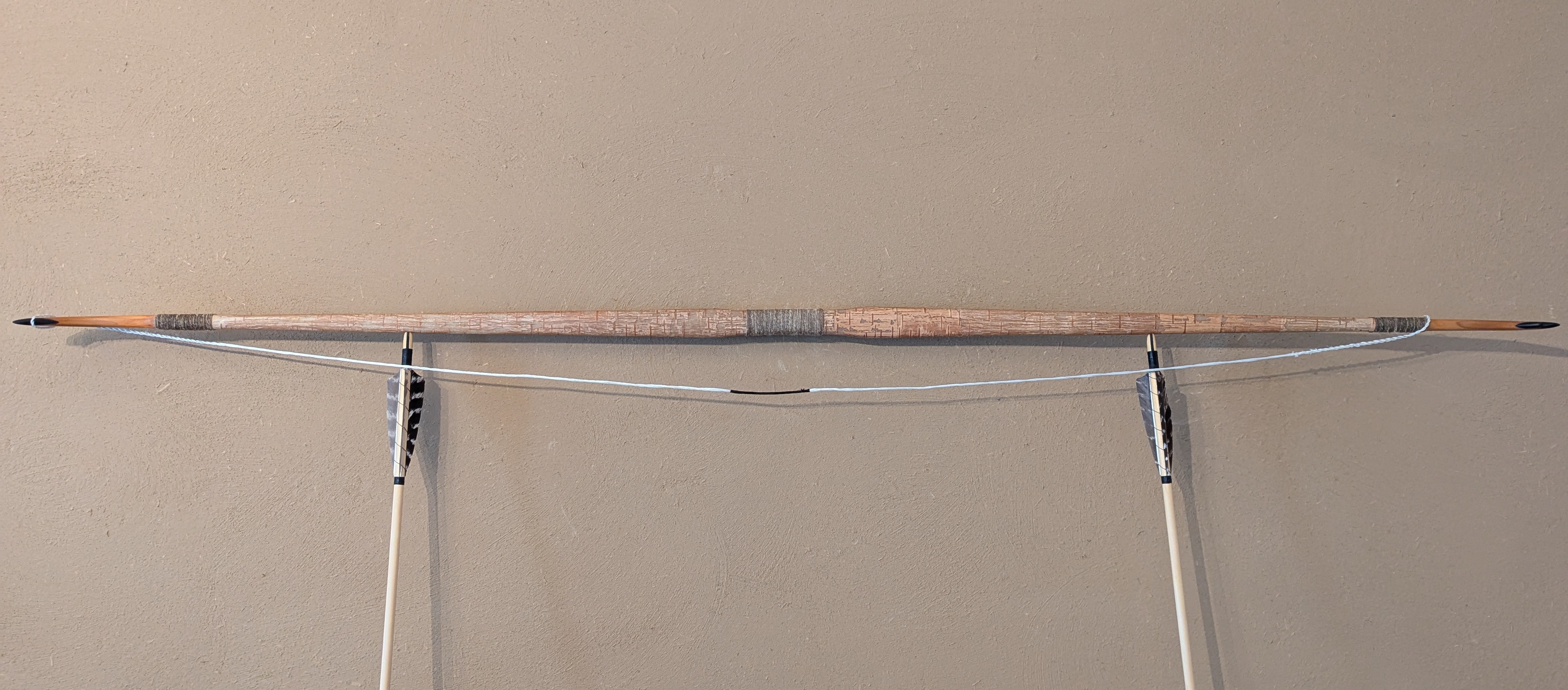 Mit den Wickelungen am Spleiß hab ich verschiedene Sachen probiert. Zuerst hatte ich schwarzes dünnes Garn drum gehabt. Das hat meiner Meinung überhaupt nicht zur restlichen Optik gepasst. Am Griff hab ich auch verschiedene Sachen ausprobiert. Von Kompletten Griffleder bis Teils Wickelung Teils Leder. Irgendwie sah das Leder aber immer wie ein Fremdkörper am Bogen aus. Grüße, Daniel