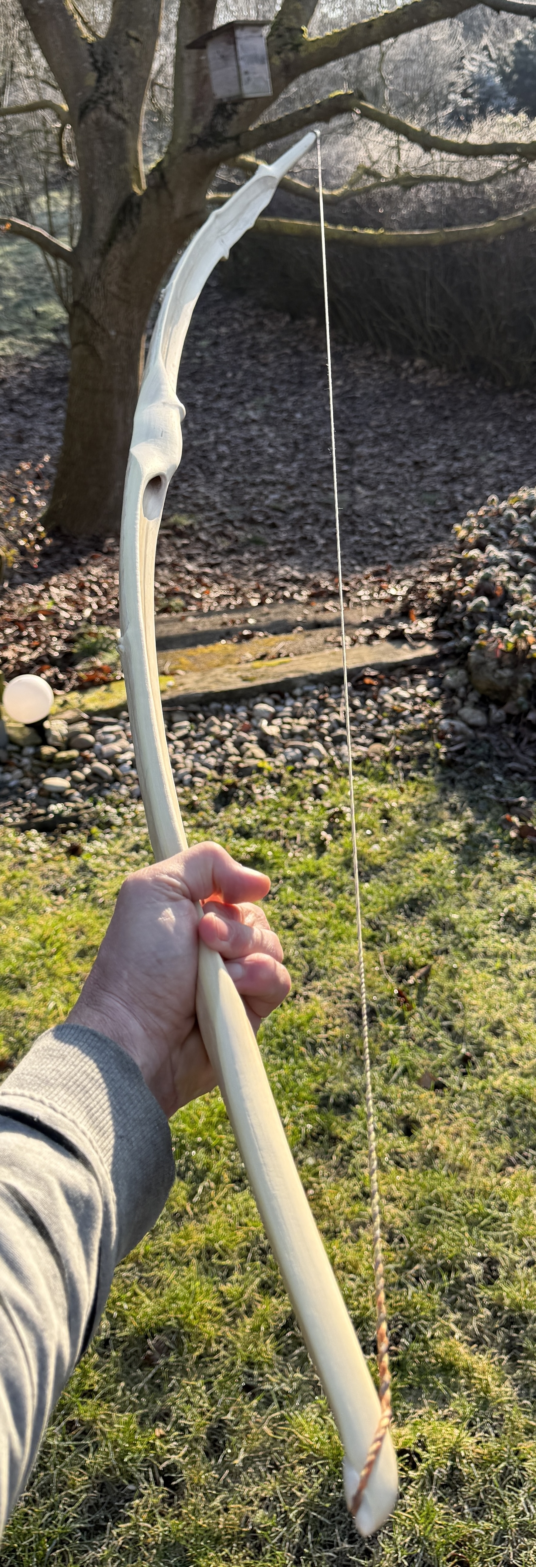 Gezeigt werden sollen Fotos vom ungespannten Bogen, auf Standhöhe, Vorderansicht und Vollauszug und mind. ein Detailfoto, also Nahaufnahme! Nicht der arrowpass aus 1m Entfernung