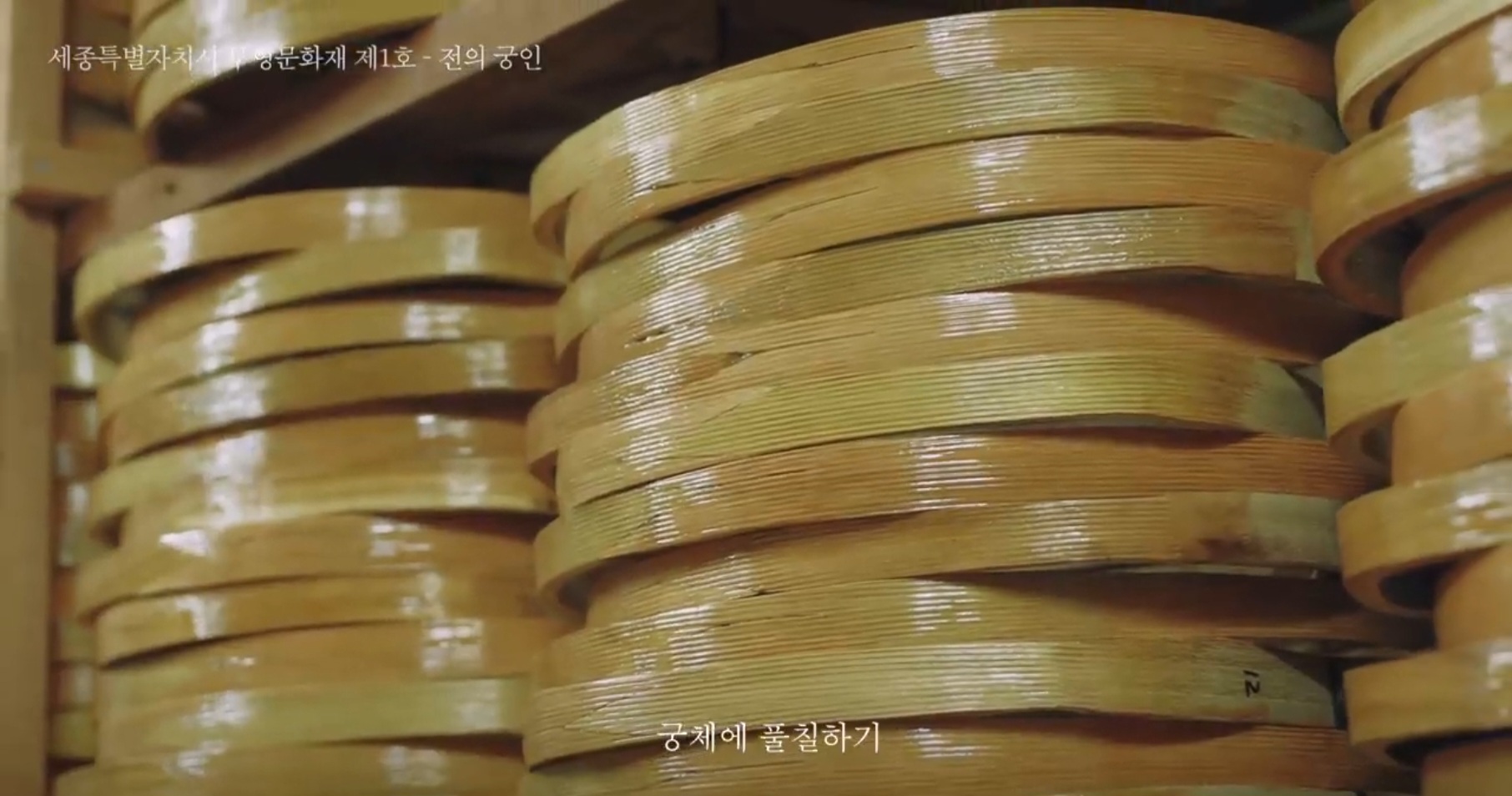 Hier nur eine Sache die mir in einem Bauvideo ins Auge gestochen ist. Hier sieht man einige Rahmen von koreanischen Kompositbögen in einem Regal liegen. Auffällig für mich ist, dass bei fast allen Rahmen der Spleiß sehr außermittig liegt, was bedeutet dass hier die "Sehnenlage" in den meisten fällen stark korrigiert werden musste.