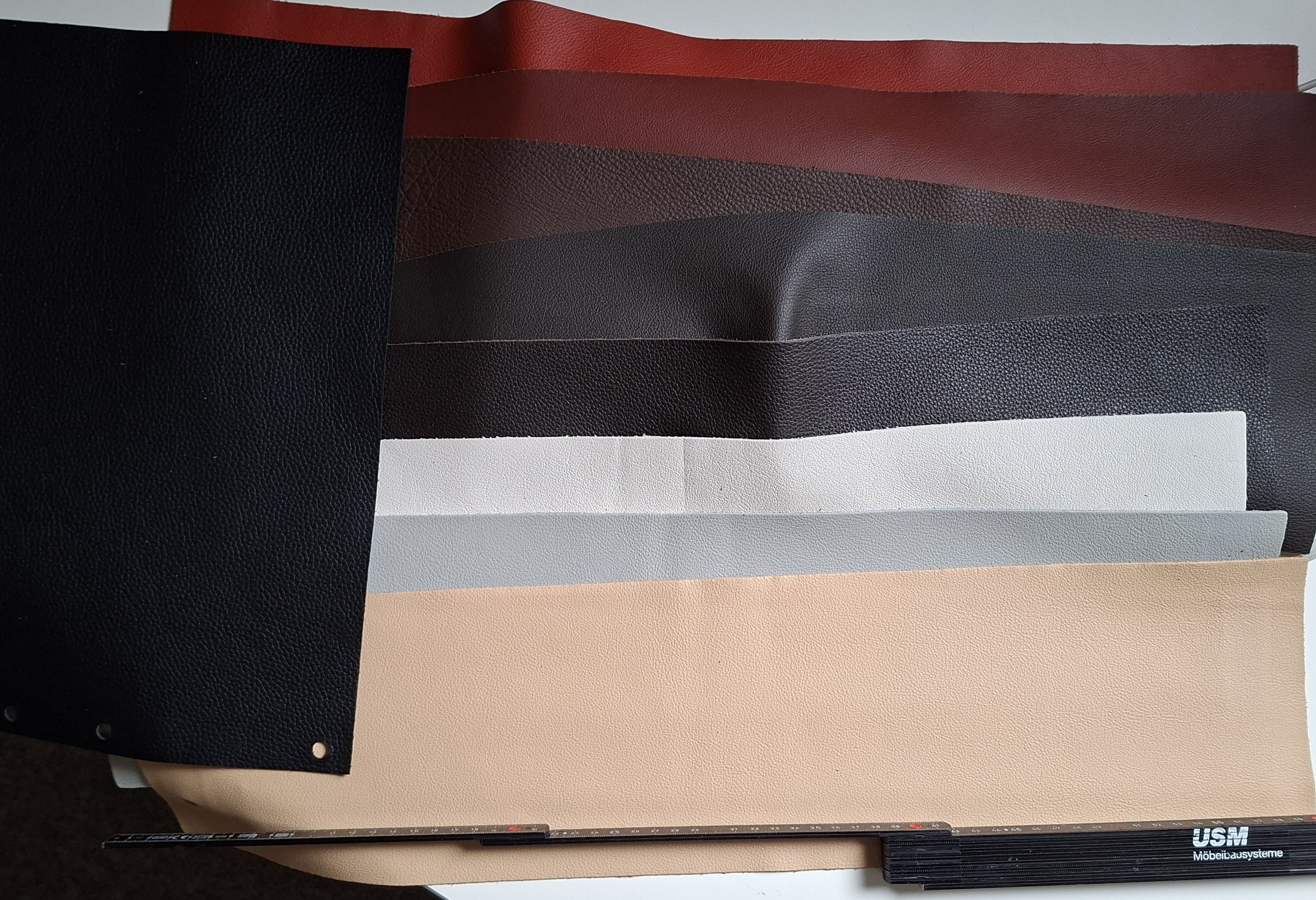 Ich hab auch mal was rausgesucht. Hochwertiges Möbelleder, 8 Streifen 60x14,5 cm und 1 Blatt 37x30,5 cm