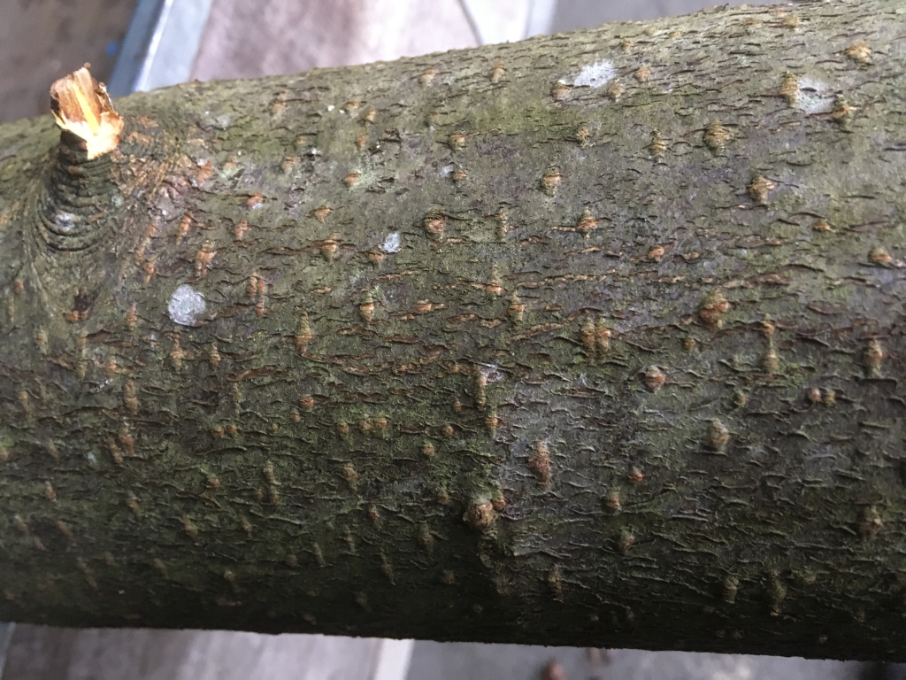 Iwie schaut er ungewohnt aus, aber ich denk schon, dass es roter Hartriegel ist. Der ist grad so bei dem Durchmesser, wo er anfangt schuppig zu werden.