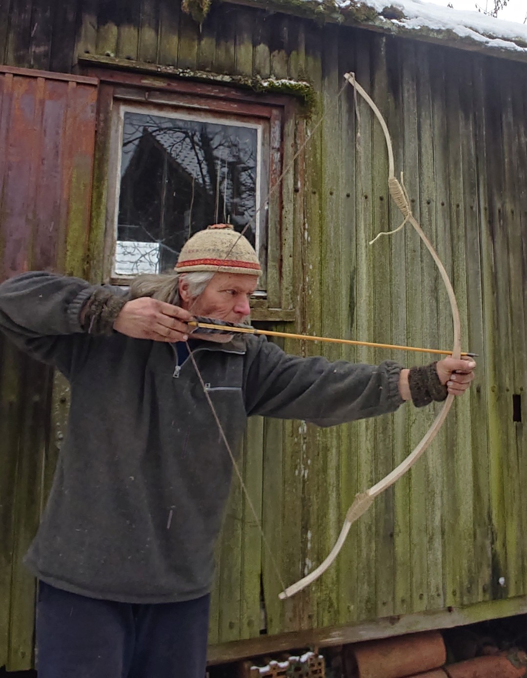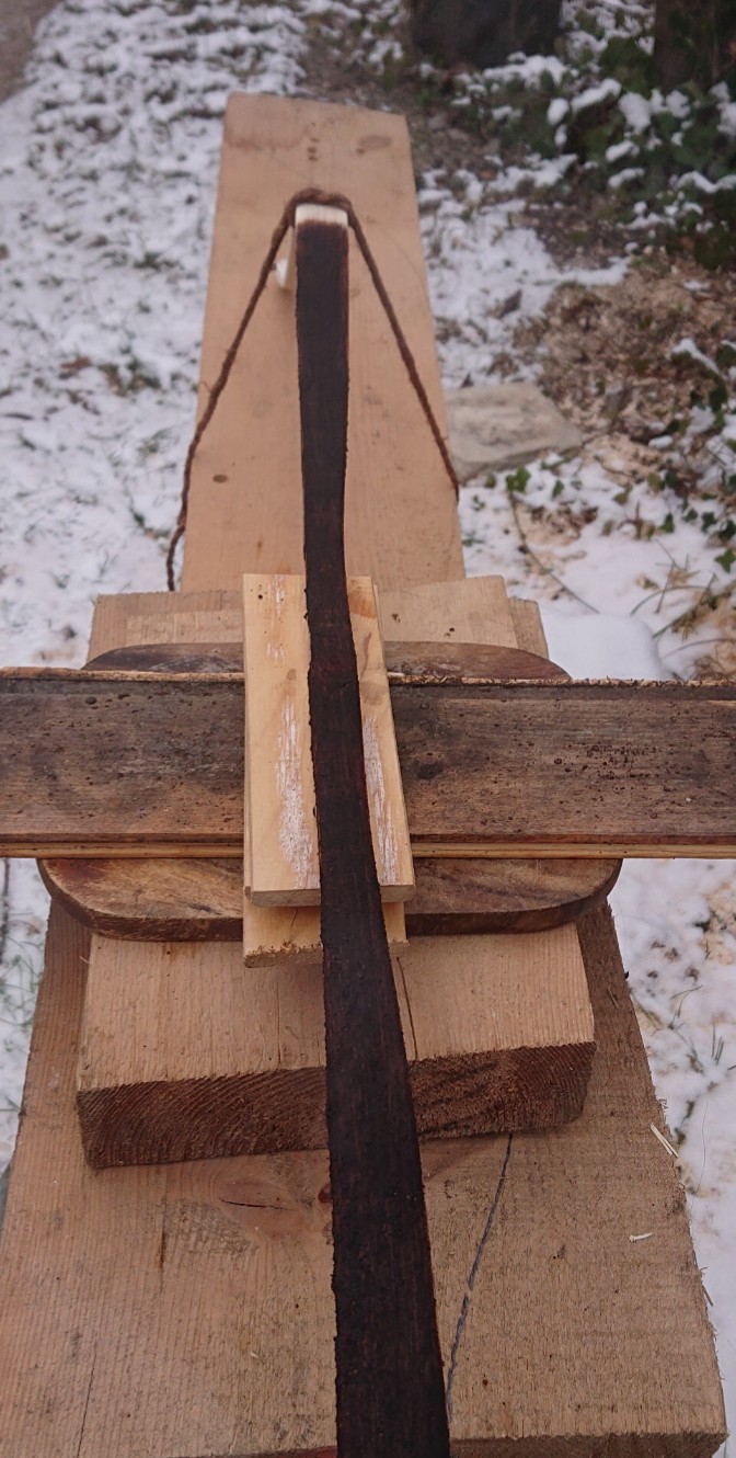 Die ersten Schüsse mit dem Testbogen... Standhöhe so, dass die Sehne Kontakt zu den Knien hat... Kontaktlos werde ich noch testen..