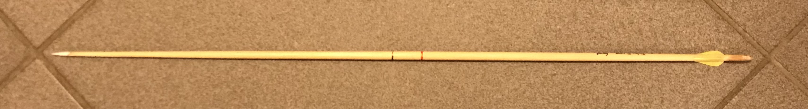 ), es ist ein Rückenwindpfeil mit 6g und Schwerpunkt 1,5cm vor der Mitte, mit Superkleber dünnflüssig lackiert, das soll den Pfeil zusammenhalten, messerscharfe Knochenspitze, geht durch den Körper wie Butter. Die Vanes aus hauchdünnem Papier, getränkt mit Superkleber, rasiermesserscharf, macht ganz glatte maximal 6mm tiefe Schnittwunden. Verleihe den Pfeil gerne