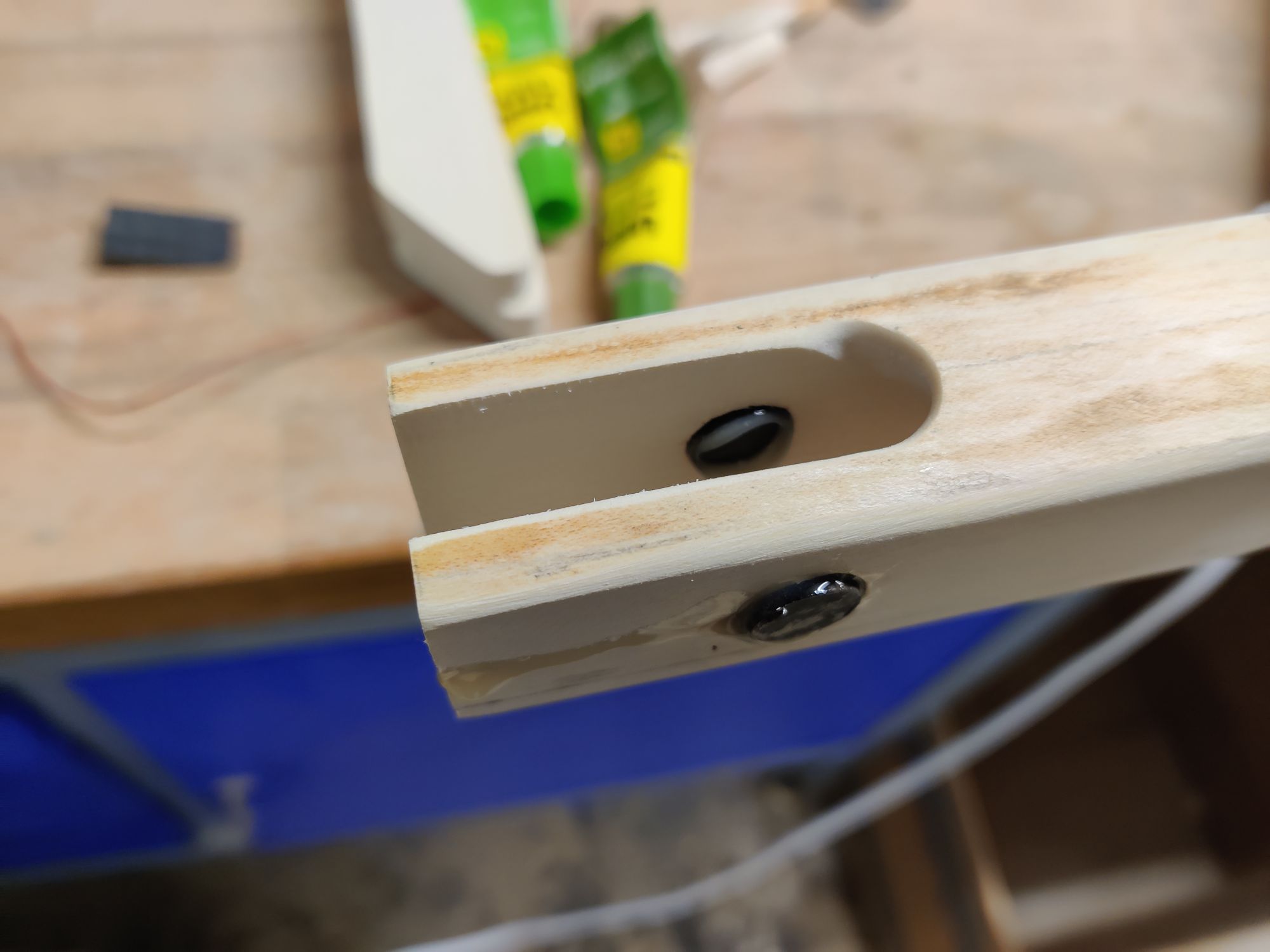 Hat jemand ne Idee wie ich den Dübel gegens herausfallen sichern kann? Ich würde es gern so ausführen das man den Recurve im falle eines Bruchs einfach austauschen kann.