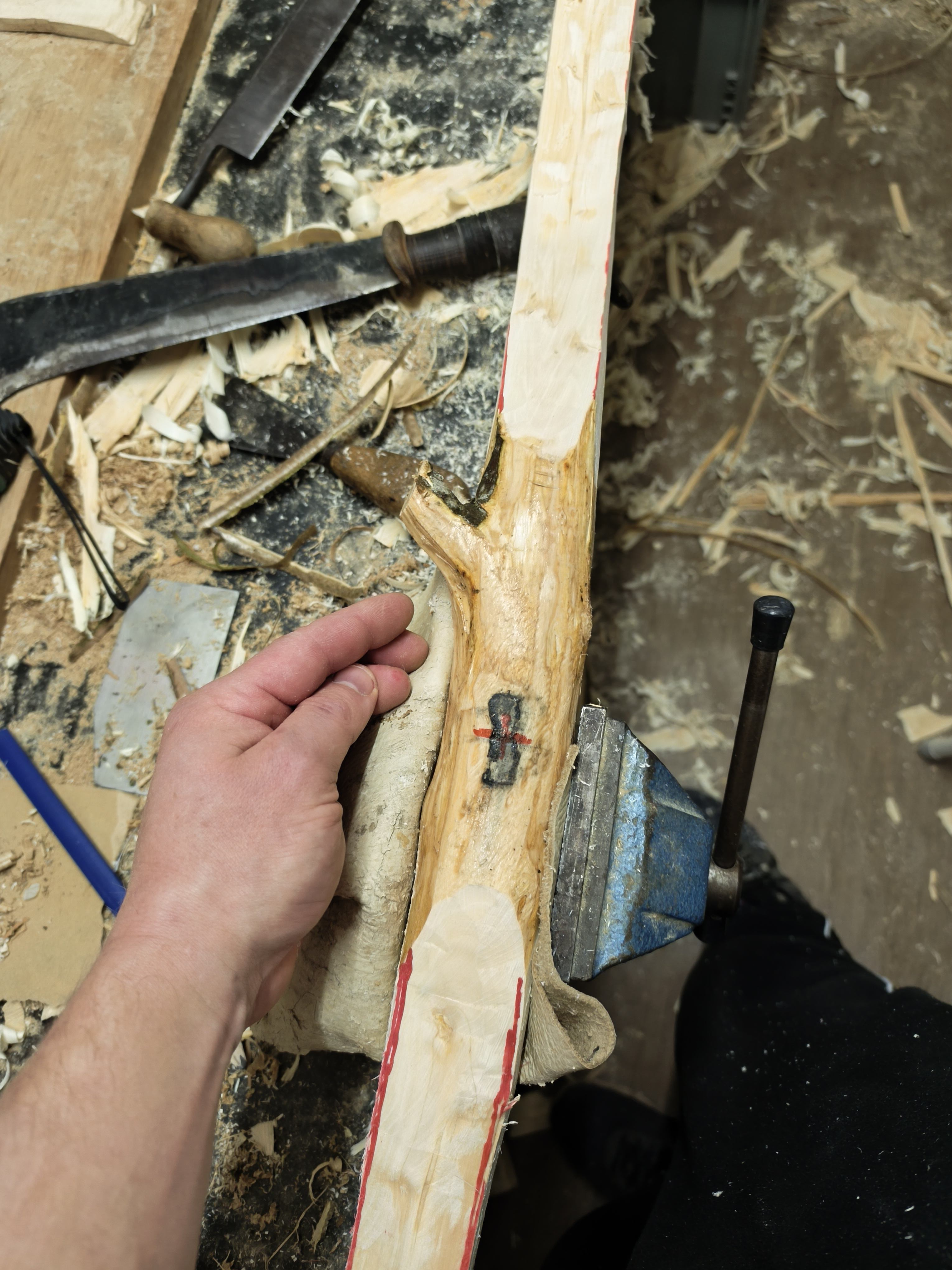 Die Faser laufen auf beiden Seiten nach oben raus, also hast es mit dem Ast zu tun. Du hast dort die Fasern durchtrennt. Mir soll es aber egal sein, es war nicht mein Bogen...