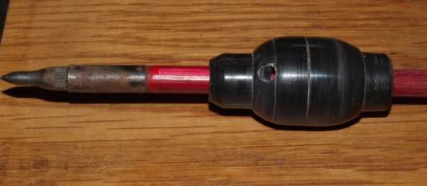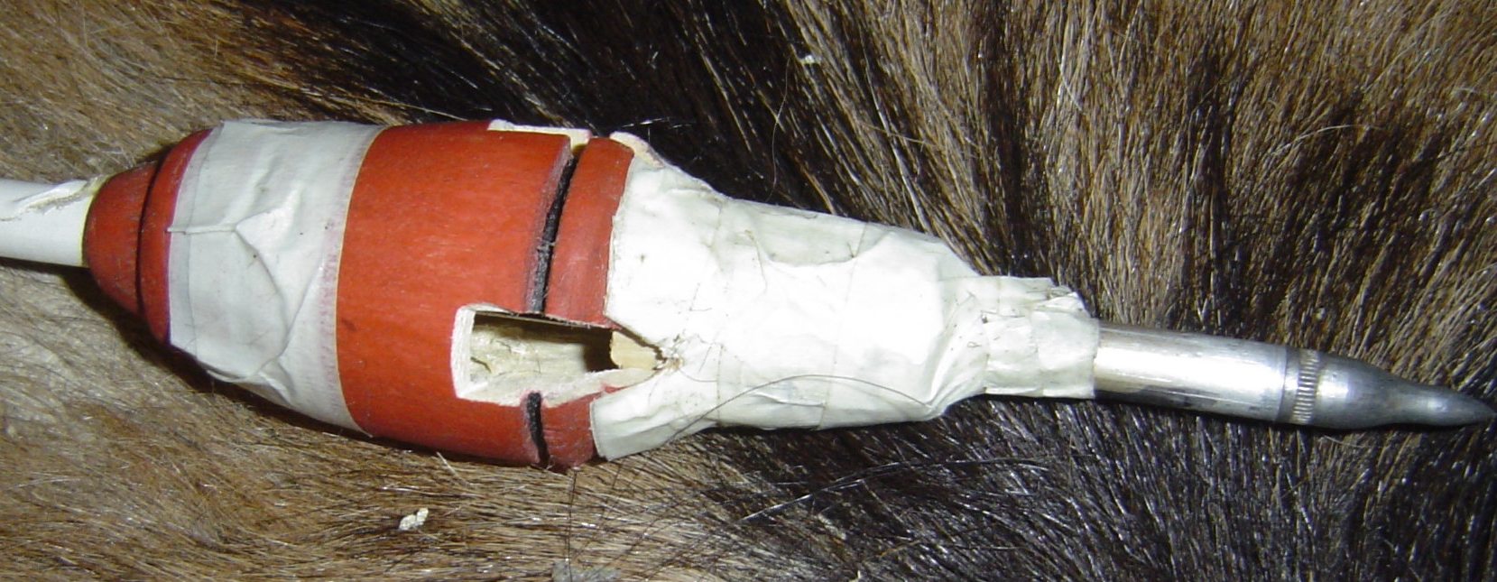 Am Horn kann man für den ersten Versuch besser korrigieren. Einfach die falschen Teile mit Epoxy ausbessern. Später bau ich dann beliebige Holzbojen. So ein Teil wie bei Fritz Eicher ist problemlos machbar. Allerdings mache ich kein Zeremonienschießen und würde immer die Spitze durchschieben, damit das Teil auch ein Weilchen am Leben bleibt.