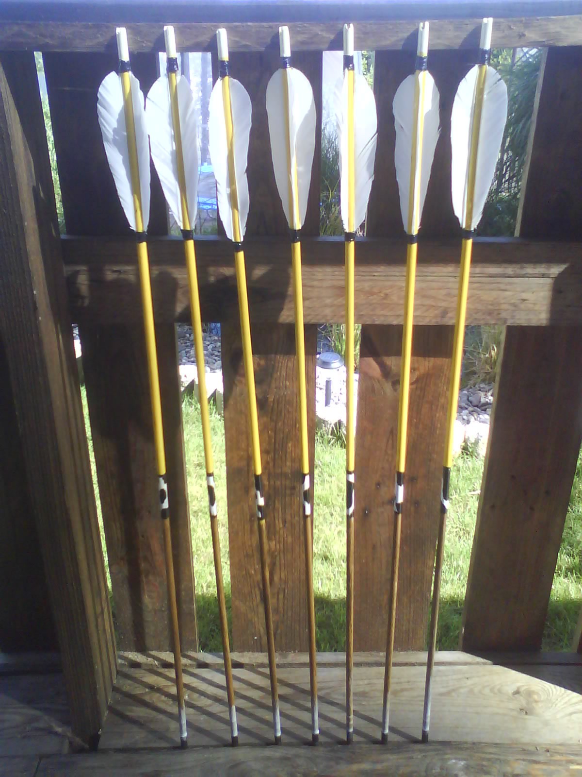 Zweitens, wenn ich mir die Nockkerbe auf dem vorletzten Bild genau anschaue, dann fehlen da so 2-3 züge mit einen 120'er Schleifleinen, die Bambusgrate sehen mir noch eine Idee zu scharf aus im Vergleich zur Fadenstärke.