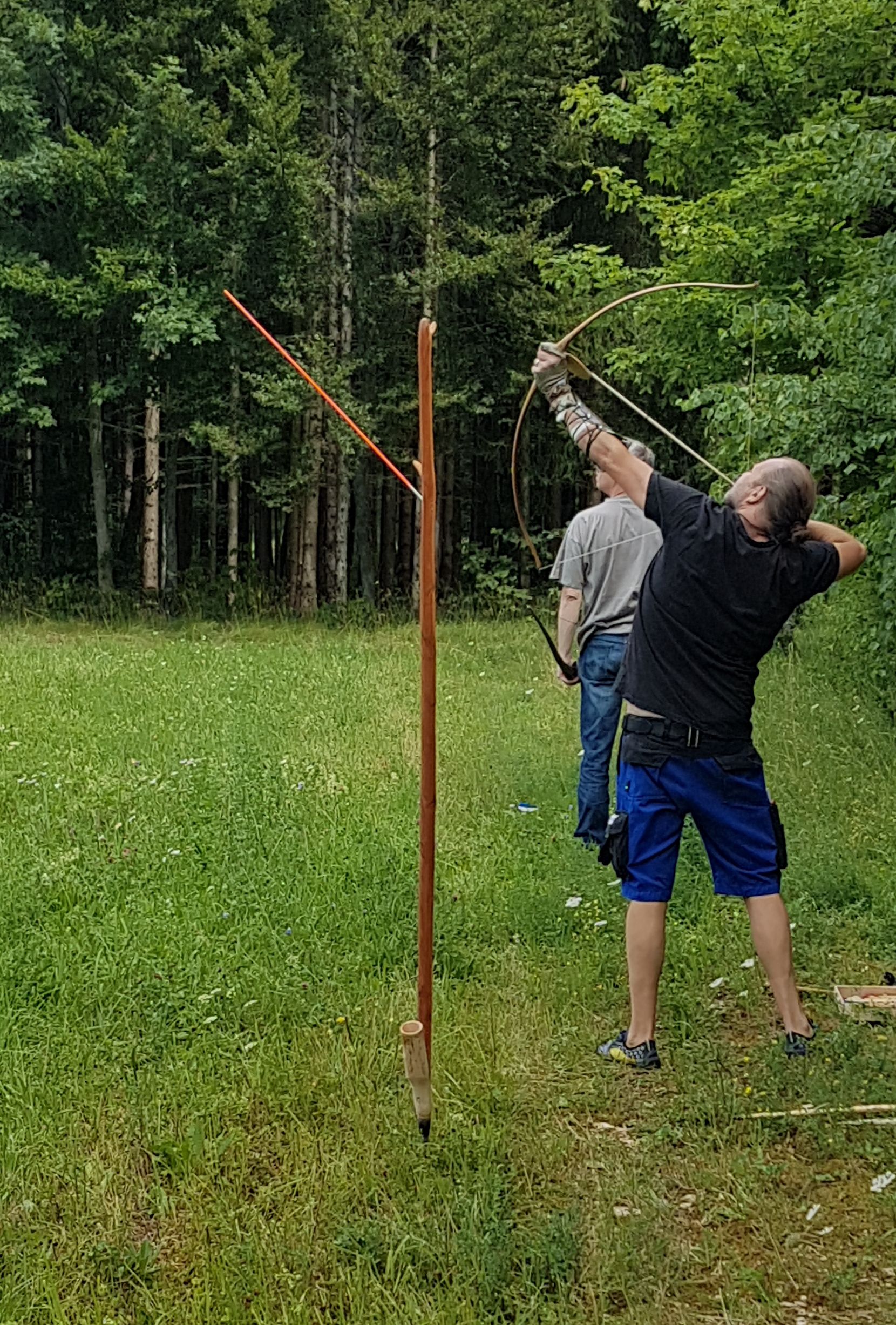 Am besten abgeschnitten hat aber tatsächlich mein Komposit mit meinem selbst gemachten Pfeil. Vermutlich wegen der hohen Auszugslänge von 29". Der flog mit 350 grain erstaunliche 303m. Der Bogen müsste um die 45-50# bei dem Auszug haben. Ich denke fürs nächste mal werd ich Pfeile mit der selben Länge machen, die aber einen stärkeren Tapper haben und somit bei gleichem Auszug leichter sind.