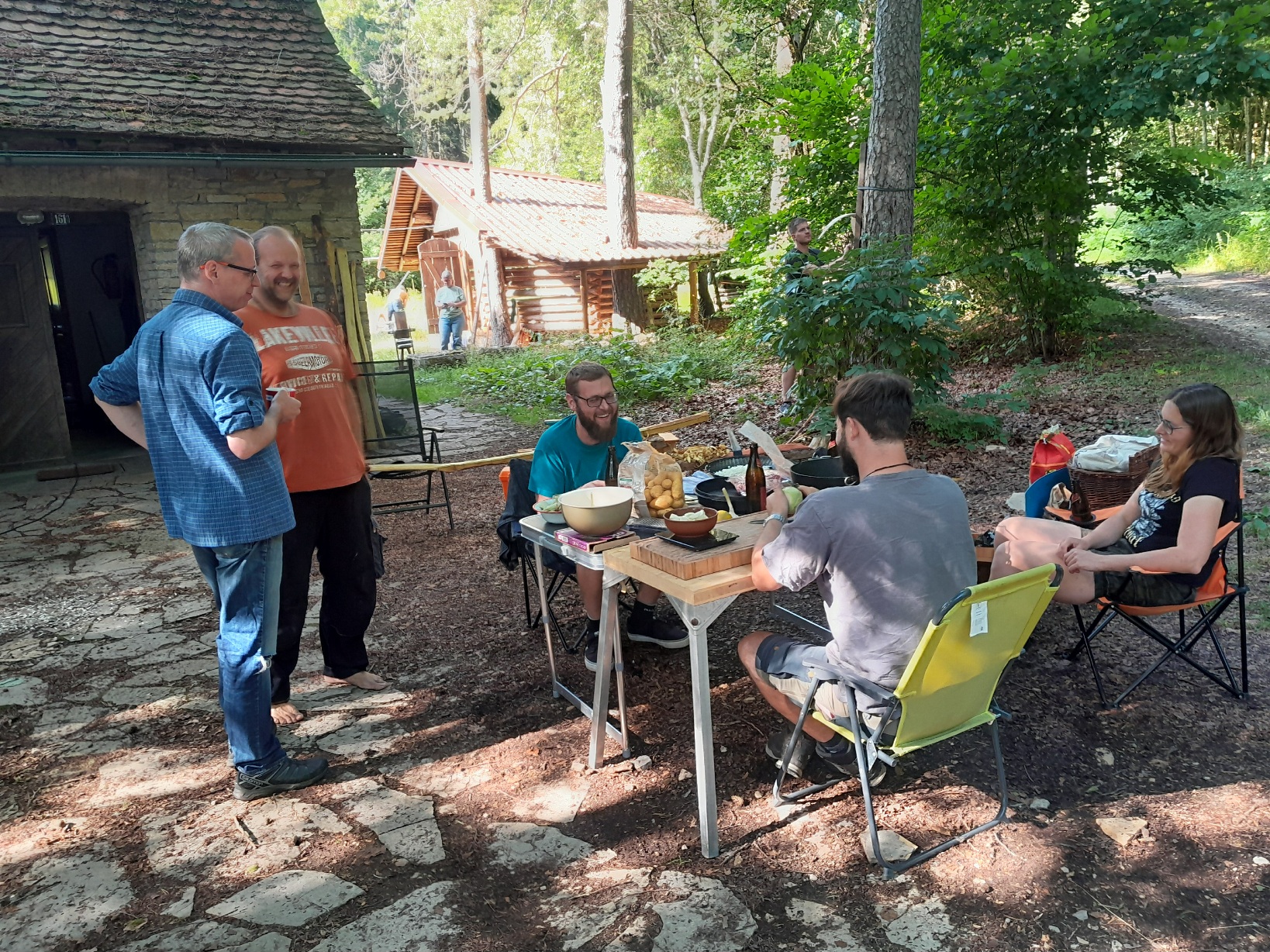 - Sonntag Vormittag musste das angepeilte Geburtstagsgeschenk von fka noch fertig gestellt werden. Was gibt es schöneres als vollkommen entspannt bei der Arbeit zuzuschauen (Breti, Inge, Tom Tom, Christoph, Matthias, F'al Gran, fatz und Theron)