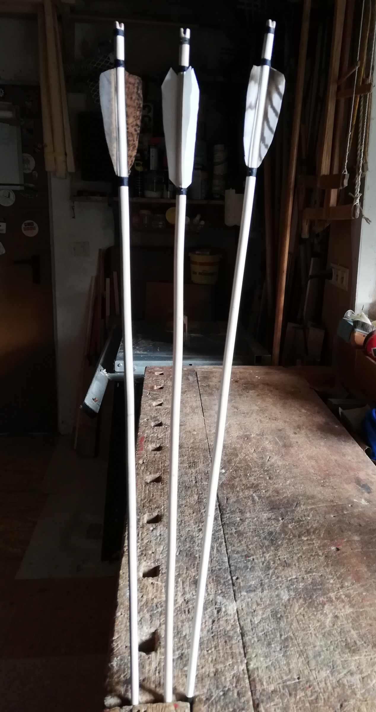 Sie fliegen wunderbar auch wenn sie für meinen 38# Bogen wohl zu schwer geraten sind. Aber fürs erste passt das so.