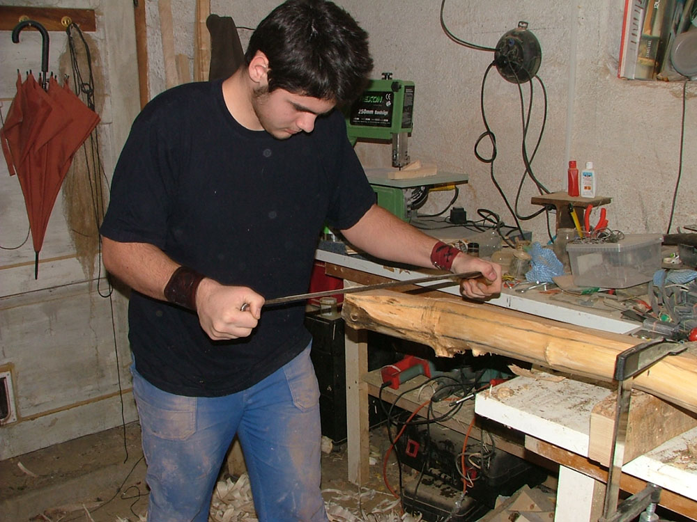 Danach mit dem Zugmesser noch etwas nachbearbeitet damít nicht zuviel Holz trocknen muss. Auch mit die Japansäge ein Entlastungsschnitt durch den Griff gemacht. Dadurch reißt das Holz hier hoffentlich nicht unkontrolliert (beim letzten Sapturnier vom Rabe abgeguckt