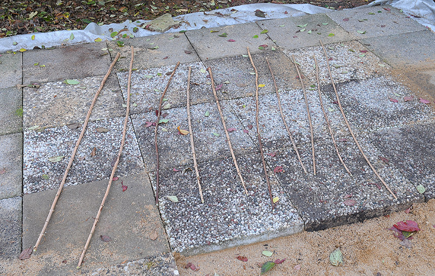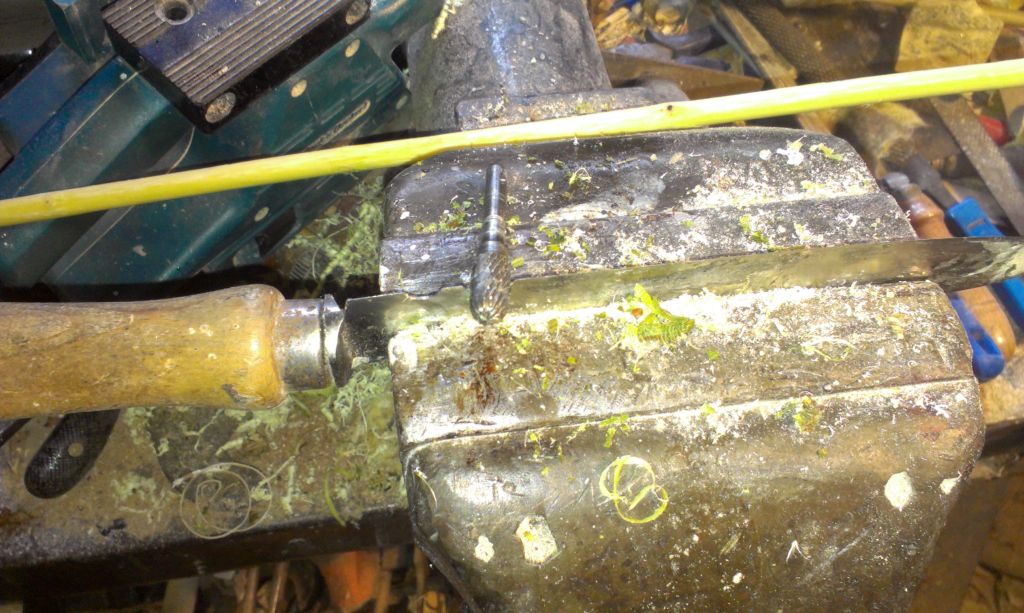Ich hab wie da beschrieben steht auch ein altes Messer genommen und eine Mulde in die KLinge geschliffen und damit die Schäfte auf Mass gebracht. Entrinden geht damit übrigens auch super. Für einen Schößling zu entrinden braucht man damit vielleicht 20 Sekunden.