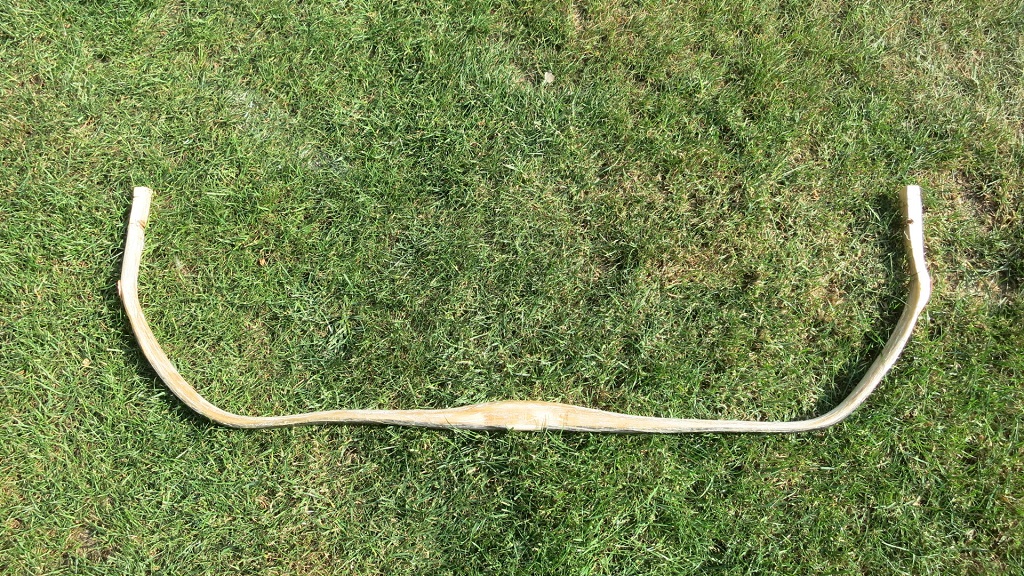 So, habe jetzt gefeilt, geschliffen und mit der Ziehklinge abgezogen und nun beschlossen: mehr trau ich mich nicht abnehmen. Da ich das Horn rund abgeschliffen habe, kann ich am Rand erkennen, wann ich auf das Holz stoße, und das ist nun an mehreren Stellen der Fall. Der Bogen ist nun um ~ 30 g leichter und wiegt 473 g.