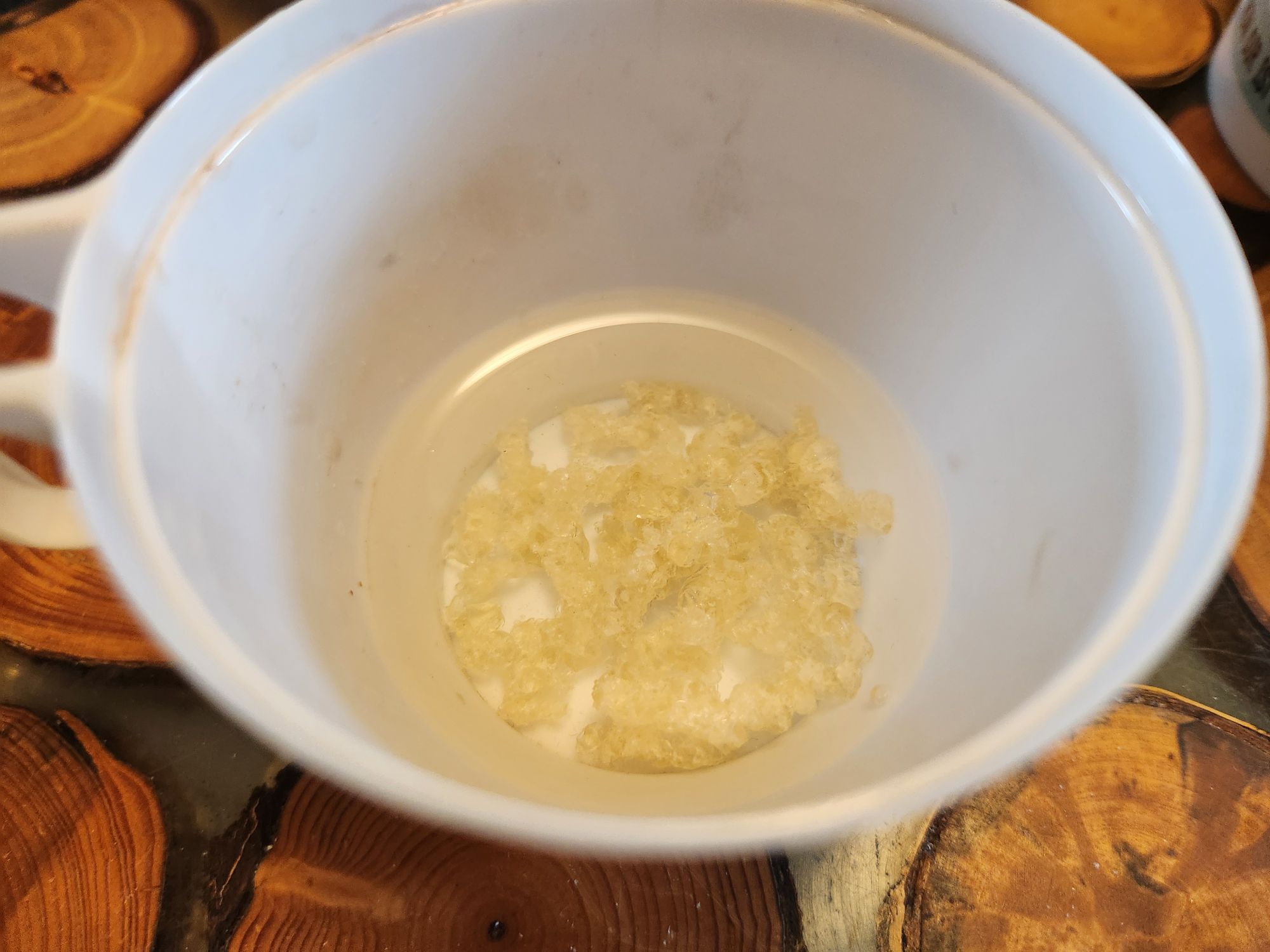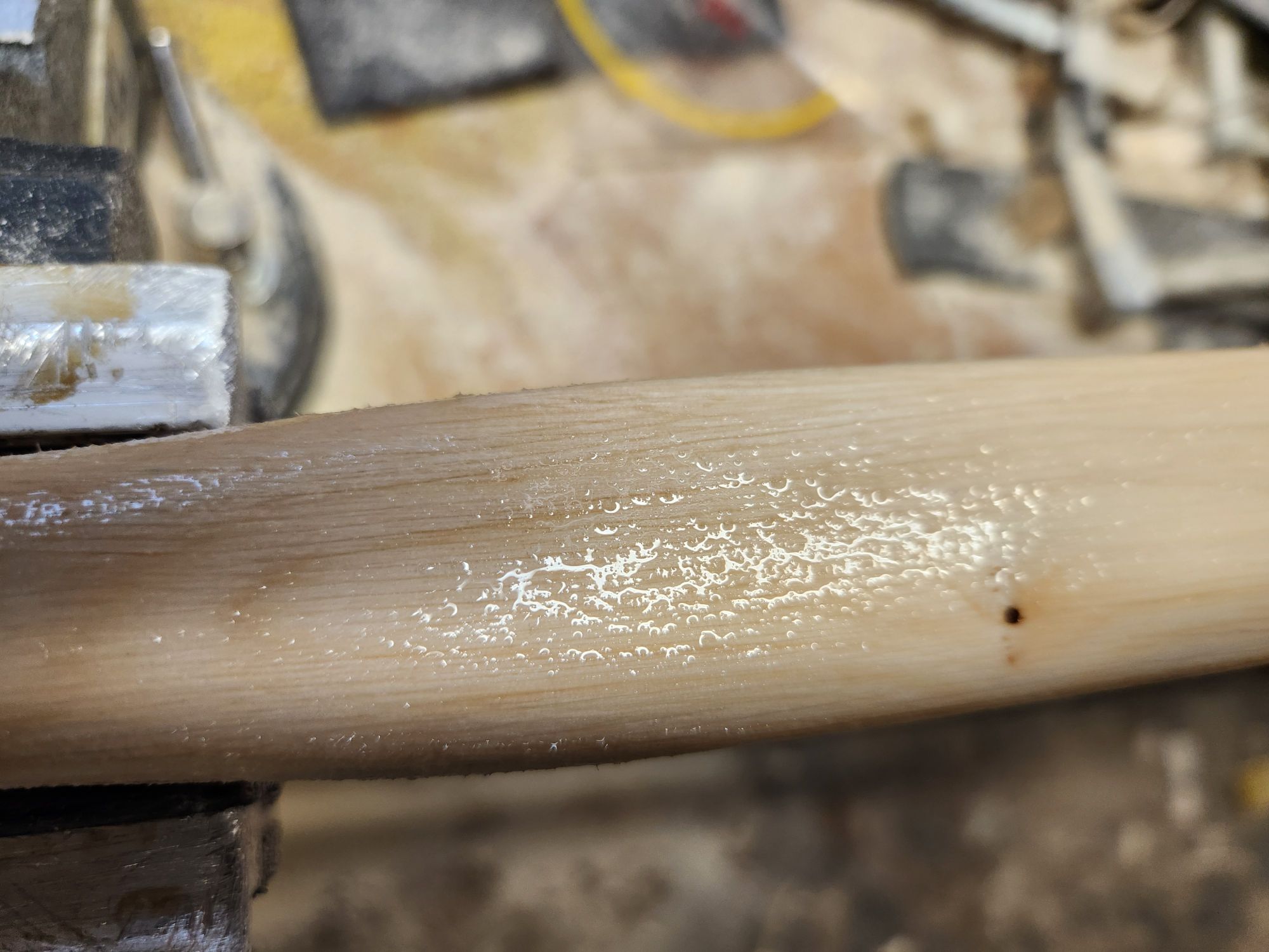 Am Tag darauf (heute) hab ich die Oberfläche aufgeraut und den Hausenblasenleim quellen lassen.