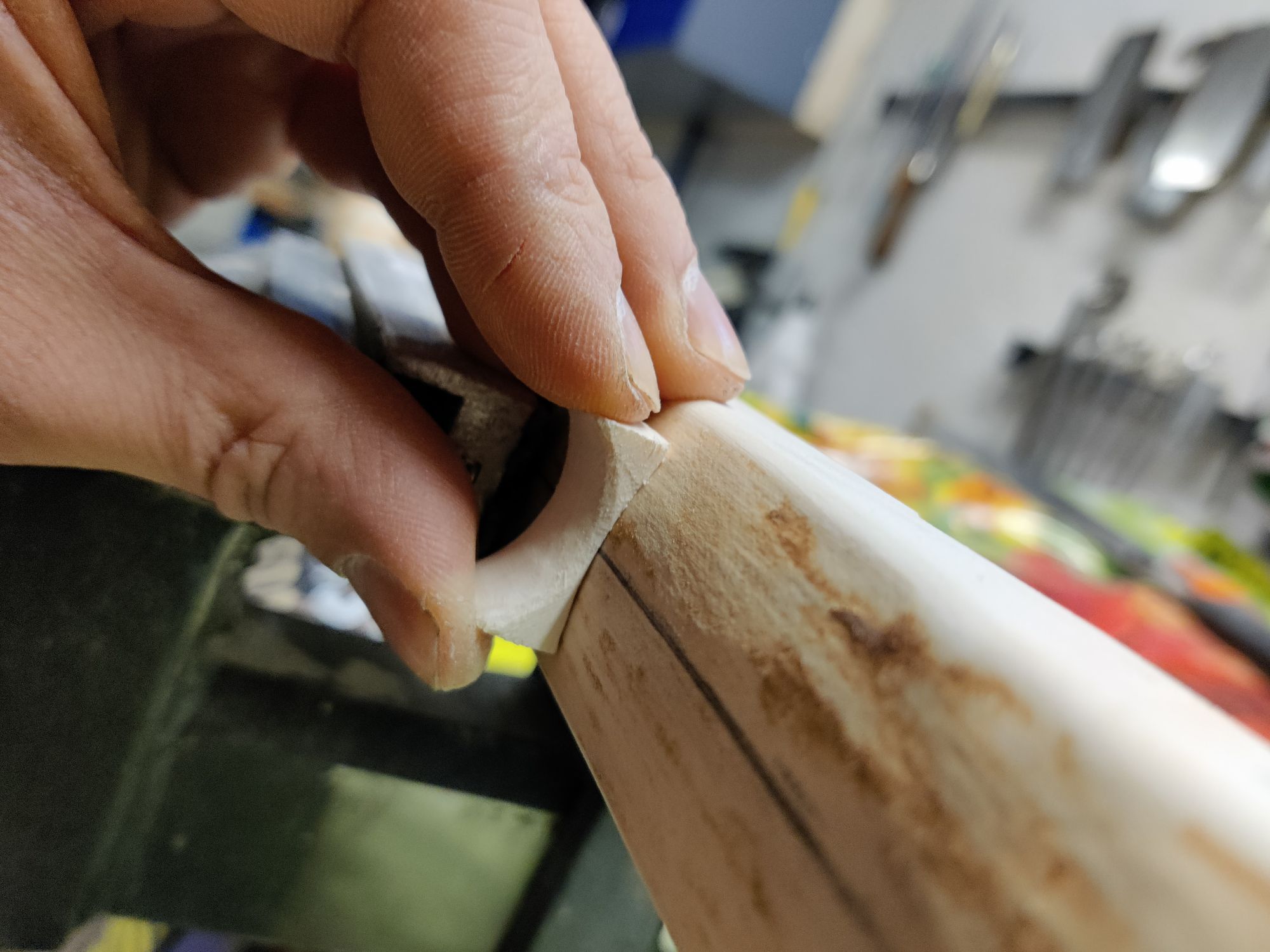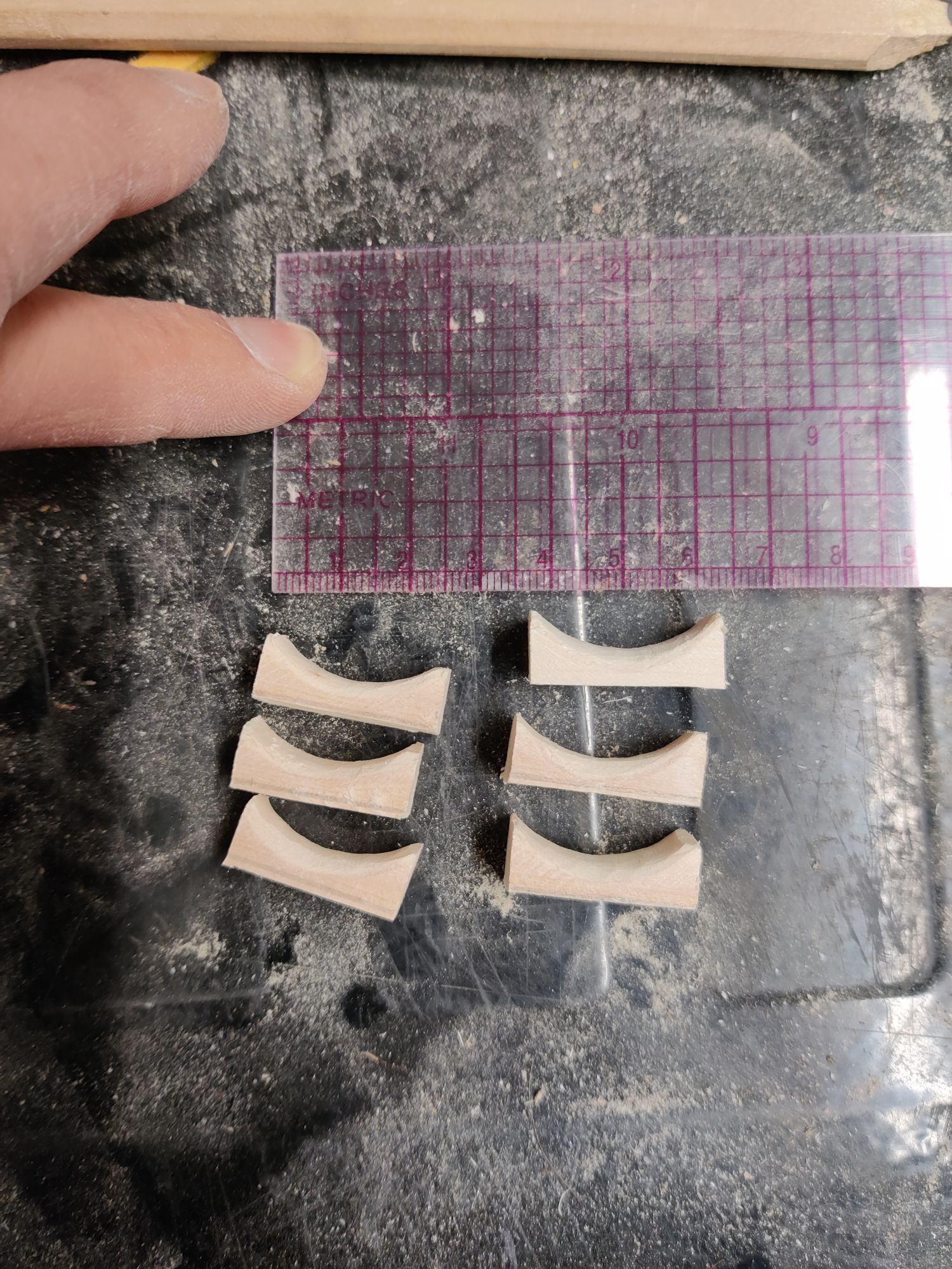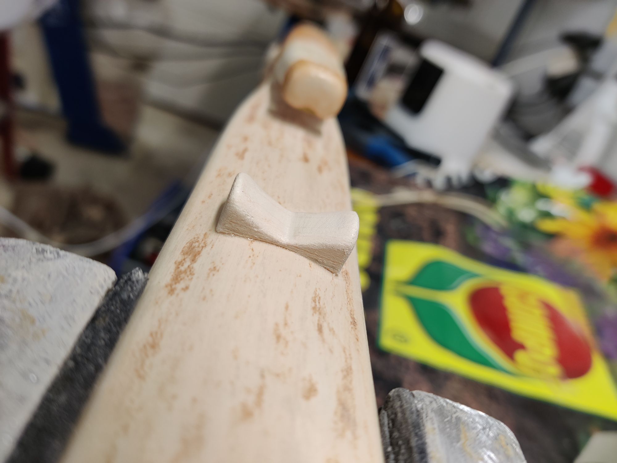 Als nächstes noch 6 Sehnenbänkchen gefertigt und halbwegs an den Bogenrücken angepasst. Die werde ich morgen damits schnell geht mit Uhu Hart aufkleben. Da nun absehbar ist dass ich es in der verbleibenden Zeit nicht mehr schaffen könnte (wegen einer Veranstaltung geht mir nämlich der 15. auch vollständig flöten...) hab ich mir spontan für morgen Urlaub genommen. Morgen heißt es also Vollgas geben