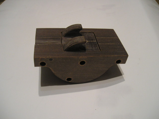 Links oben: Nuss aus Knochen, Einsatz aus Metall. Nach Original. Die Nuss ist aus einem Stück.