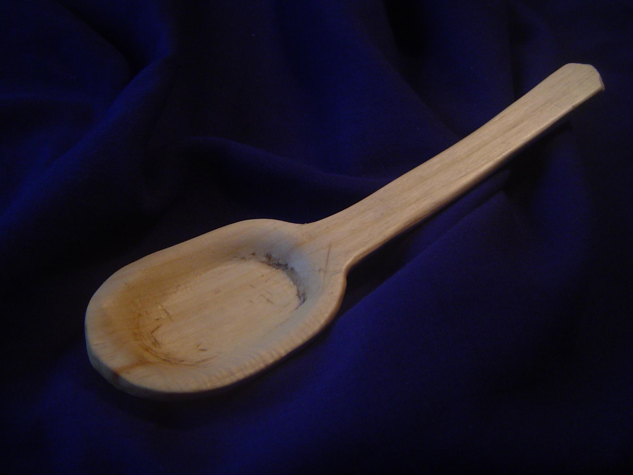ein echter "A" Löffel zur Vervollständigung meiner Gewandung. Einziges Werkzeug: Das Taschenmesser im Bild. Ist nicht gerade filigran, aber so paßt er zum Charakter. ;) Deshalb absichtlich keine Verzierungen oder anderweitigen Schnick- Schnack.