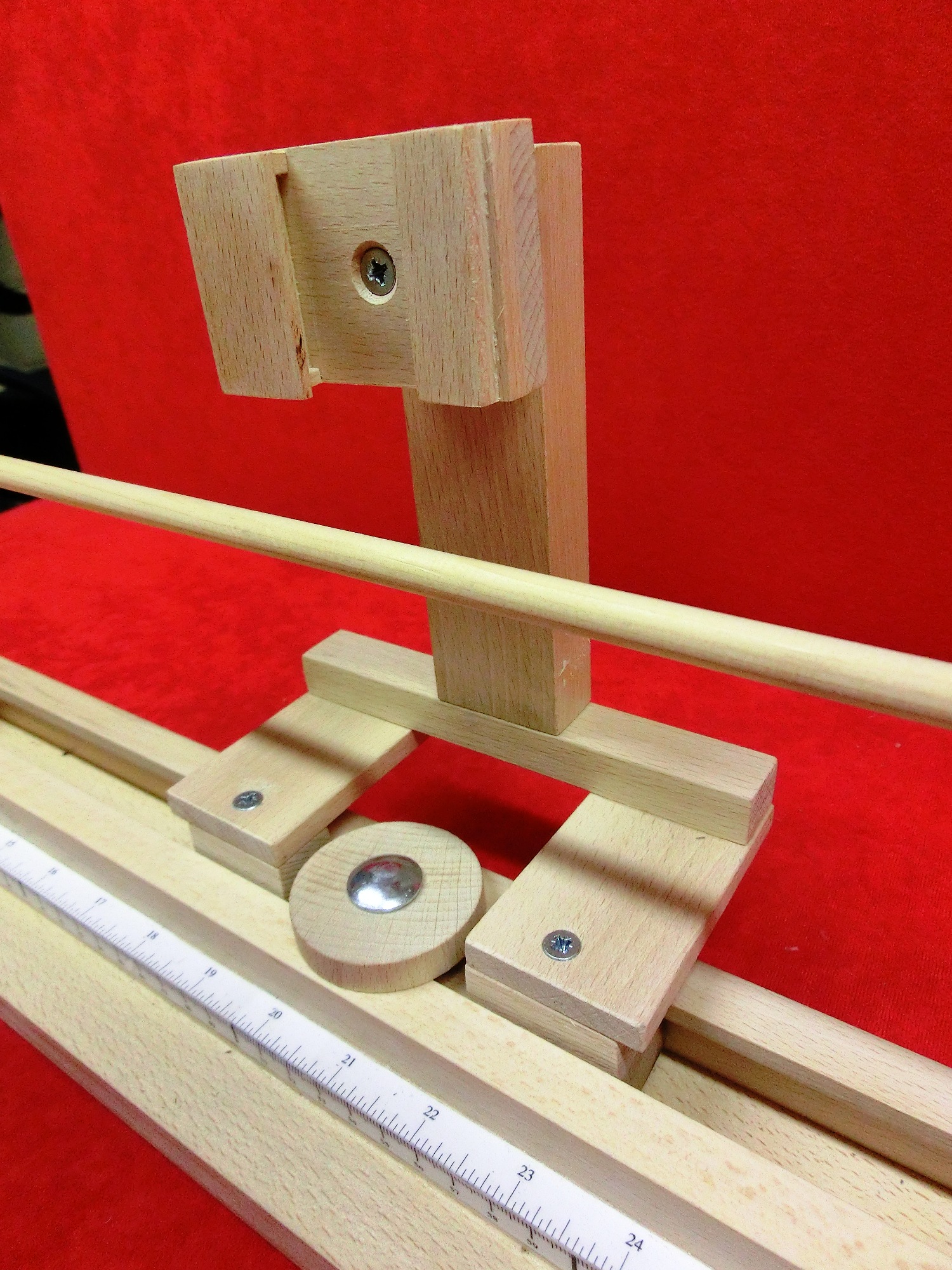 Im Mittelteil ist eine kleine Änderung nötig. Durch die versetzten Rollen reicht schon ein kleiner Druck, damit sich der Schaft biegt. Daher habe ich die Anordnung der oberen Rollen geändert.