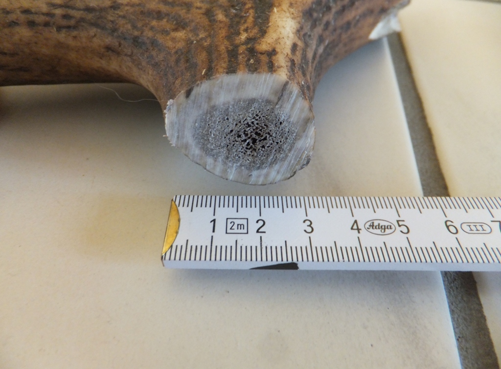 Oki, ist vom heimischen Wild aus dem saarländischen Weiskirchener Wald. Hat denke ich schon so 2 cm Durchmesser, wenn ich mich recht erinnere. Schaue später nochmals nach. Aber man sieht innendrin halt die "Struktur".