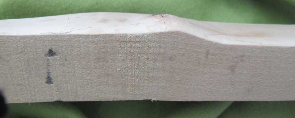 Der Knick gleich neben Tillerstock links, schaut ein bissi arg aus ganz versteh ich es nicht...ich denk aber das täuscht ein bissi weil die wurfarme durch den Ast in der Mitte ein bisschen versetzt sind und links sowieso ein leichter Knick ist.