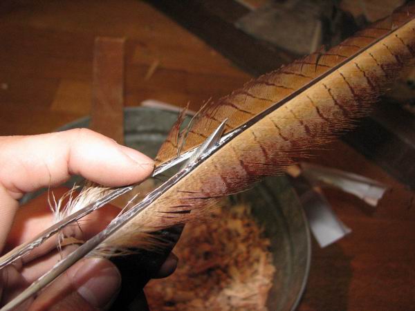 Man sieht in Japan schon ungeschnittene naturbelassene Federn aber nicht formlose und zerrupfte (Verschleiss ist wieder was anderes...). Ideal ist natürlich eine schöne Naturfeder aber eine unschöne würde man nicht hinpappen und so stehen lassen.