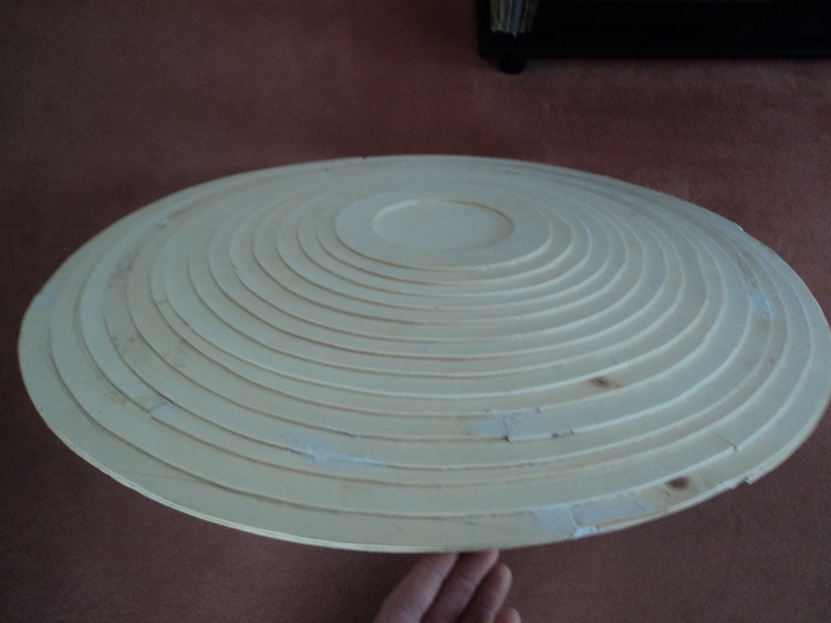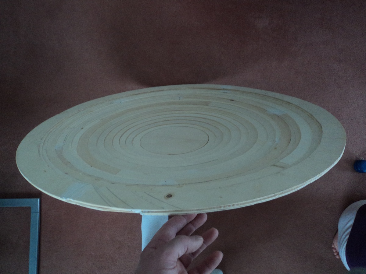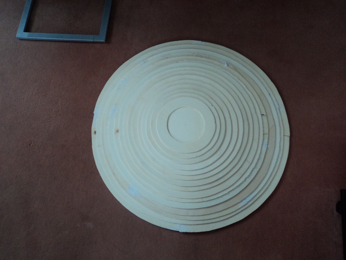 Angefangen mit 80cm Ring und selbstgebasteltem Zirkel welcher alle 2cm einen geringeren Durchmesser hat.