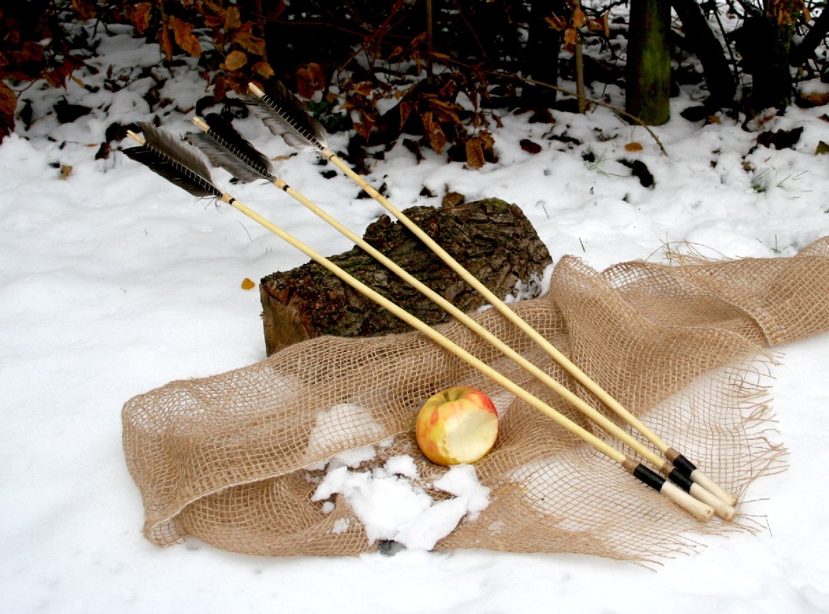 Die Inspiration für diese Pfeile stammt von der Sendung mit der Maus und von den Pfeilen die man bei Ötzi gefunden hat.