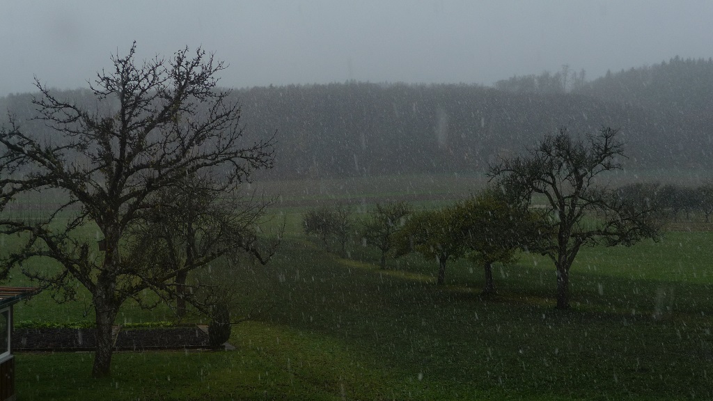 so auch heute haben wir den ersten liegen bleibenden Schnee mit ca. 5-10cm. Seit 8 Uhr schneits wir blöd vermischt immer wieder mit Regen drin.