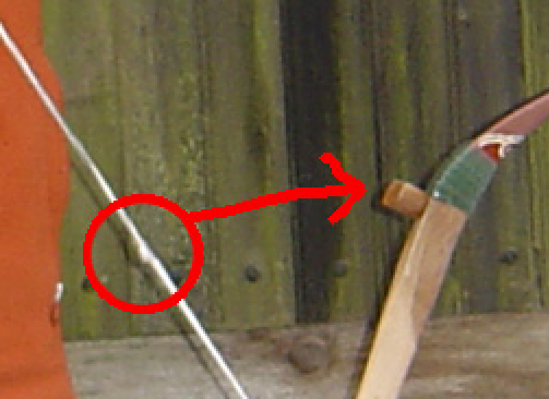Täuscht das, oder fängt die Sehne an durchzuscheuern, wo sie auf das Holz schlägt?