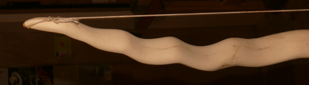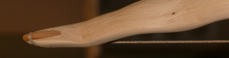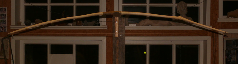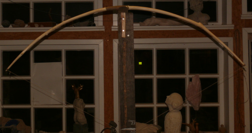 Das Pfaffenhütchen hab ich am unteren Wurfarm ein Stück gekürzt - jetzt gehen die Pfeile sauber raus und es hat um die 37# bei 32" Auszug ( bei 171 cm NtN ) ;D