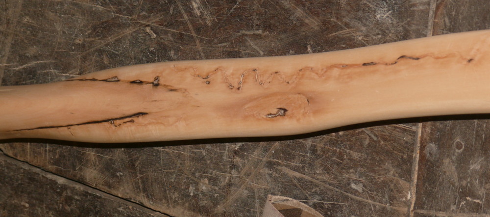 Der Wurm in lebendem Holz hinterlässt interessante Spuren... der Baum schien regelrecht gegen den Wurm zu kämpfen