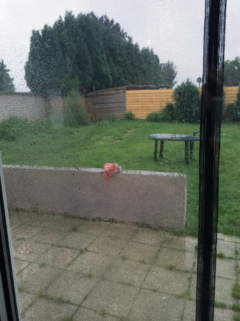 ...es regnet, und mein Arbeitsplatz ist im freien.
