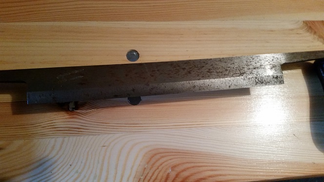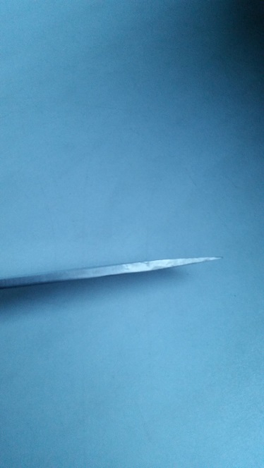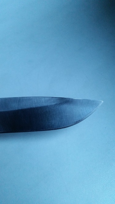 Ich habe den Grad der Klinge soweit runter und muss nun nur noch einen Feinschliff am Messerrücken machen.