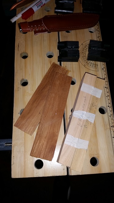 Haitha hat mich mit ein bischen Holz versorgt (danke nochmal ). Er hat mir bereits zwei Stücke kirsche Plan geschliffen die als Griffschalen verwendet weden. Außerdem waren ein Paar Stücke Orange/Osage dabei. Die werde ich ebenfalls verwenden. die fotos werde ich heute Abend noch einstellen, ansonten Morgen.